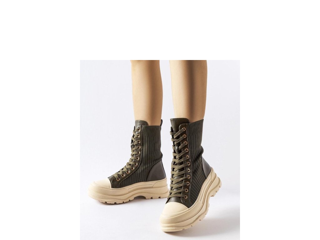 Tmavě zelené botky Vitto jsou kombinací pohodlí a moderního stylu. Vyrobené z vysoce kvalitní gumy, tyto boty jsou odolné a odolné vůči změnám počasí. Šněrování vpředu umožňuje nastavení podle individuálních preferencí. Jejich moderní design s světlou tlustou podrážkou jim dodává jedinečnost a charakter. Kulatá špička je velmi pohodlná pro nohy a střední podpatek jim dodává eleganci. Výška nad kotníkem poskytuje dodatečnou podporu a ochranu. Botky jsou také k dispozici ve verzi s plochým podpatkem, což je činí ještě praktičtějšími a pohodlnějšími. Bez ohledu na příležitost budou tmavě zelené botky Vitto skvělou volbou pro módní a stylovou ženu. Výplň: Ne. Materiál podrážky: Guma. Barva podrážky: Béžová. Zapínání: Šněrování. Kolekce: Podzim/Jaro.