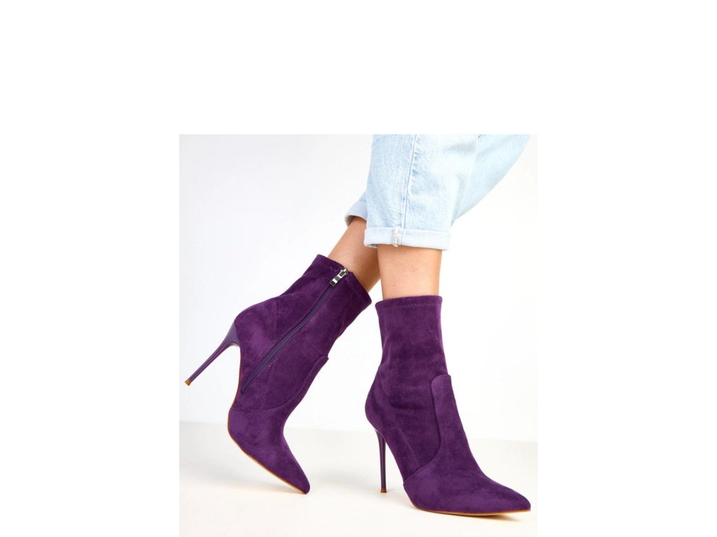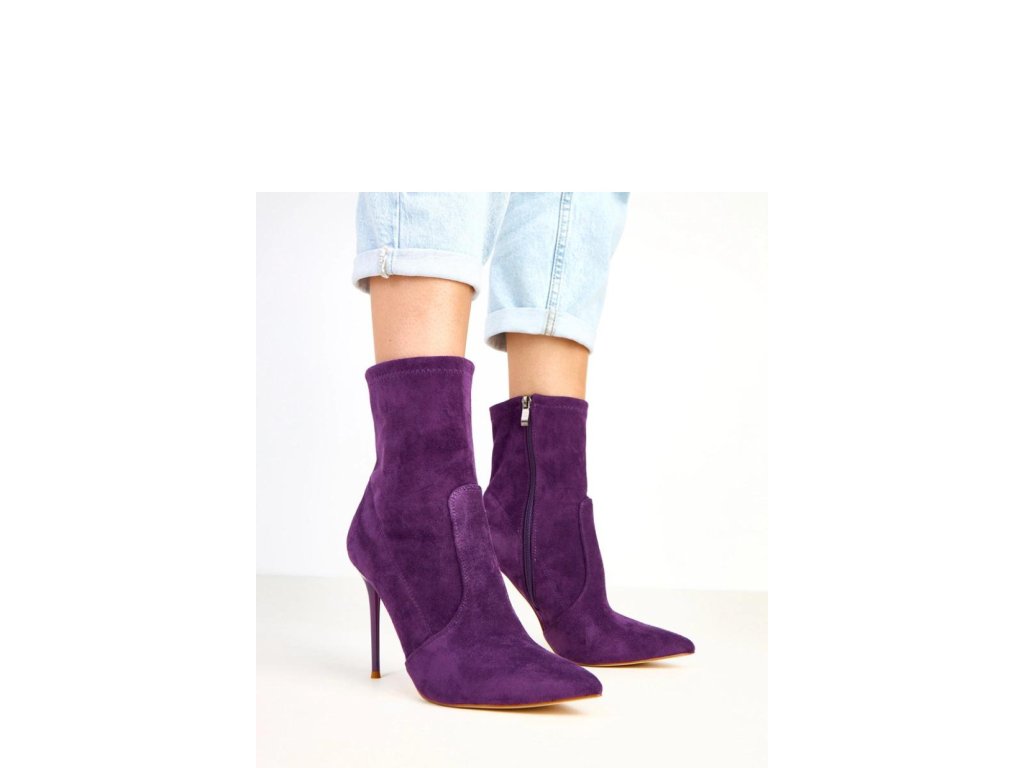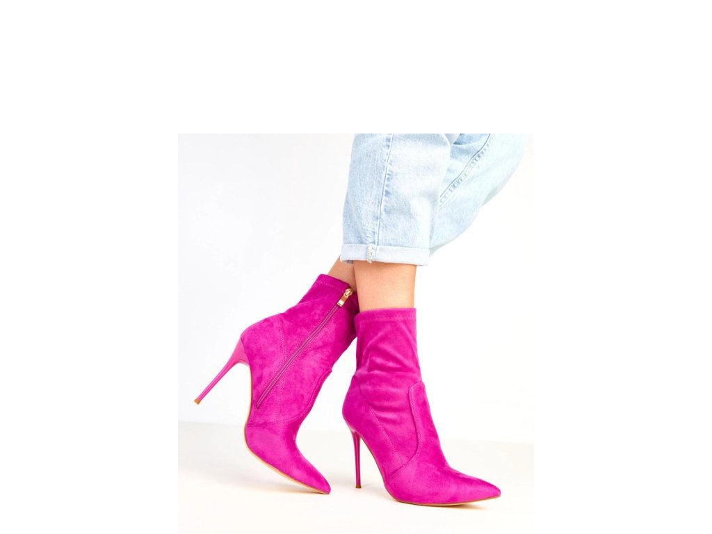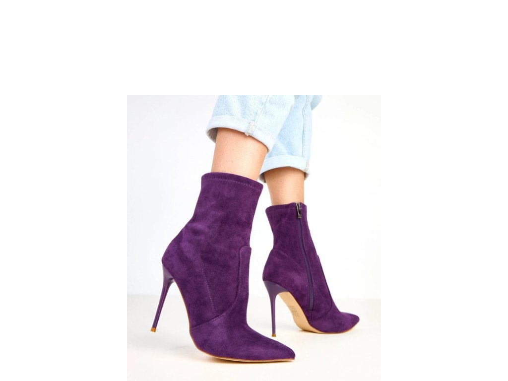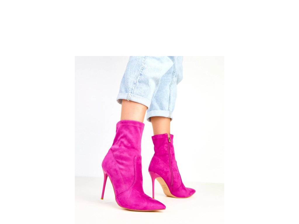 Elegantní kotníkové boty pro ženy vyrobené z měkké ekologické semišové kůže. Úzký špičatý nos a 11centimetrový jehlový podpatek jim dodávají velmi ženský charakter a opticky prodlužují nohy. Model má 14,5 cm vysoký svršek, který jemně obepíná kotník a krásně ladí jak s kalhotami, tak s elegantní šaty. Zapínání na zip zajišťuje pohodlné obouvání, a vnitřek vyrobený z látky zaručuje pohodlí při nošení. Jsou to elegantní kotníkové boty ideální na speciální příležitosti, schůzky nebo večerní vycházky, perfektní volba pro ženy, které ocení klasiku v moderním provedení.