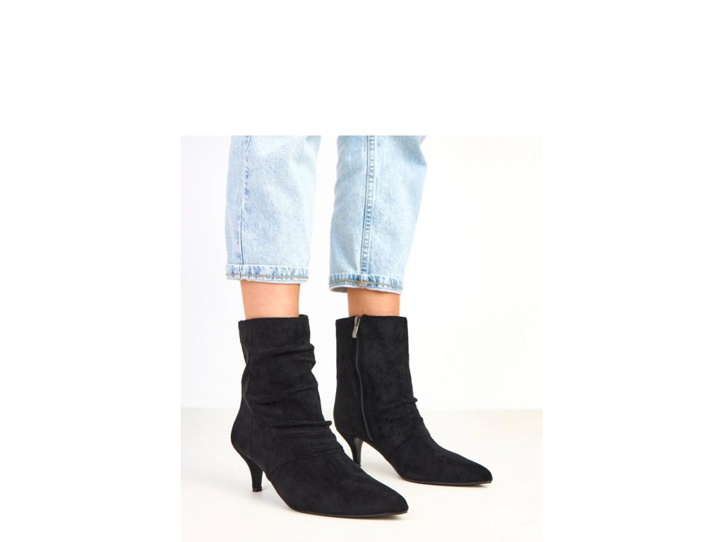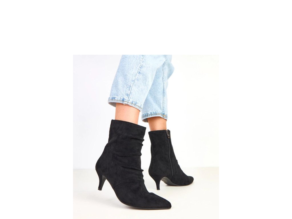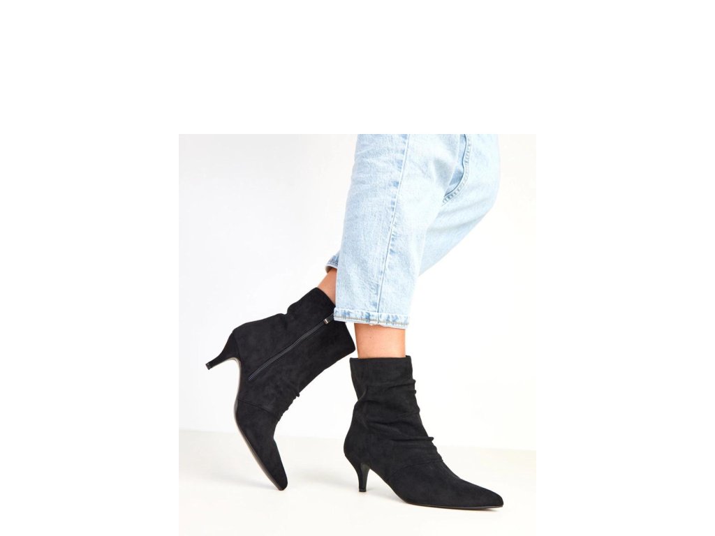 Elegantní dámské kotníkové boty vyrobené z jemné ekologické semišové kůže. Štíhlý špičatý nos a 6centimetrový jehlový podpatek dodávají botám ženský charakter a jemně zvýrazňují nohy. Model má 16,5 cm vysoký svršek, který elegantně obepíná kotník a skvěle ladí jak s sukněmi, tak s kalhotami. Vnitřek je vybaven měkkou látkou, co zajišťuje pohodlí při nošení. Praktické zapínání na zip usnadňuje obouvání a svlékání bot a celkový vzhled je udržován v elegantním stylu, ideálním na setkání, slavnostní události nebo večerní vycházky.
