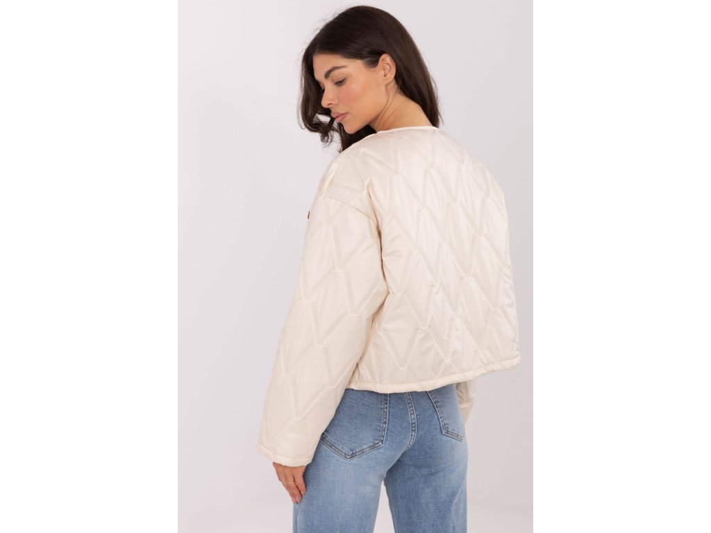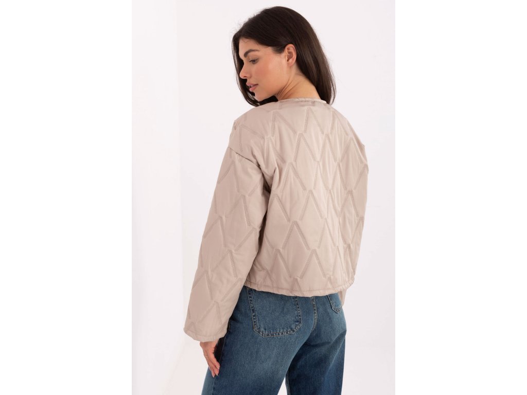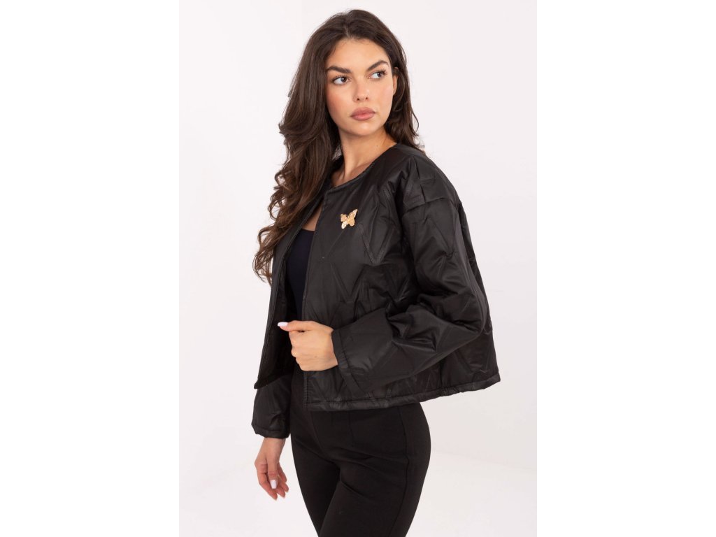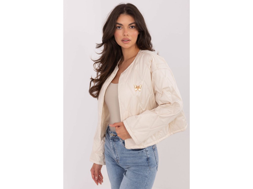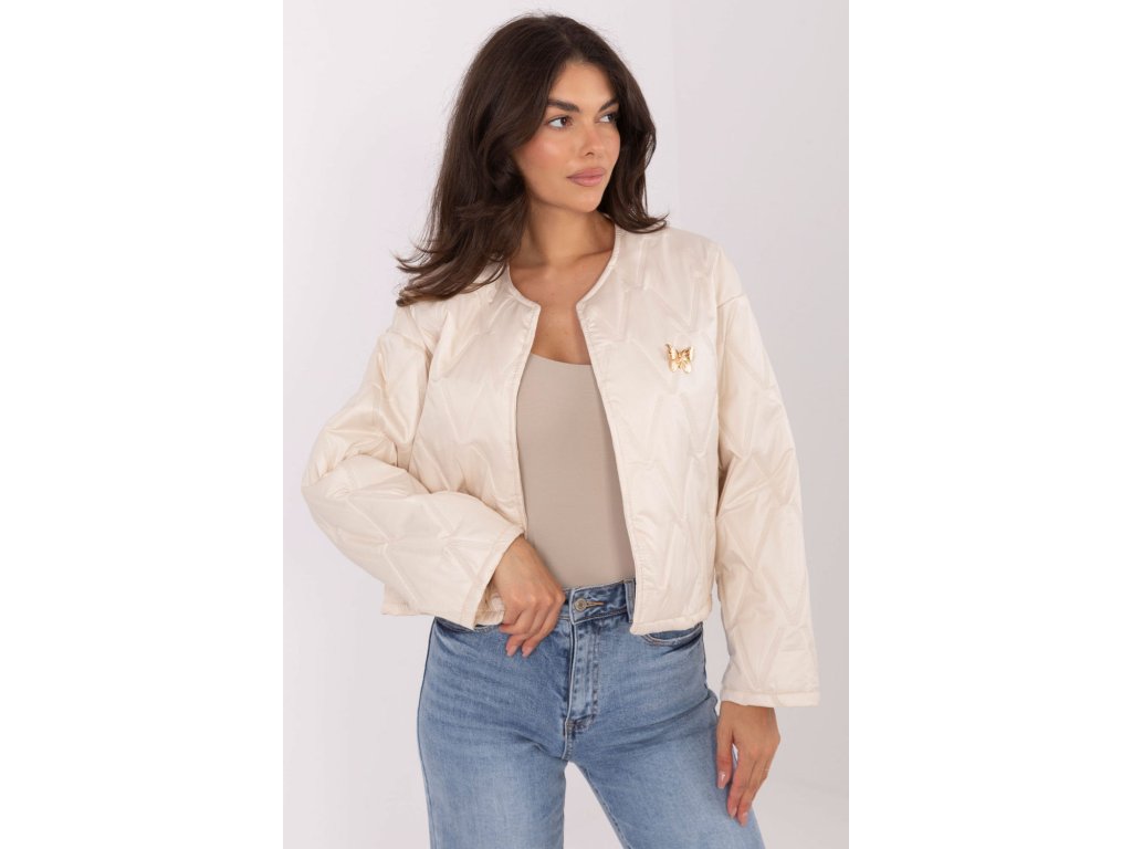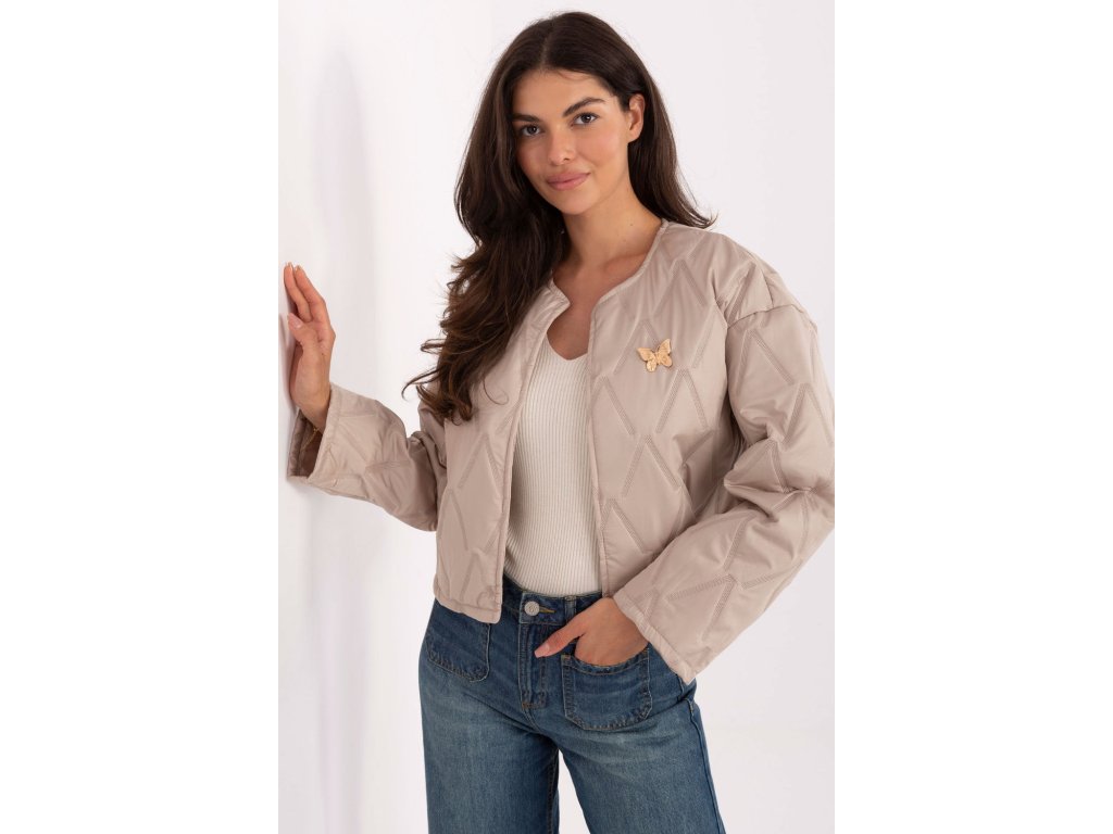 Dámská quiltovaná bunda s elegantním charakterem, ideální jako přechodný vrchní oděv na podzim/zimu/jaro. Vyrobena z polyesteru, vyznačuje se různorodou strukturou materiálu a decentním quiltováním, které dodává celku výjimečný vzhled. Model bez límce vypadá moderně a lehce, což ho činí skvělou volbou jak pro každodenní stylizace, tak i do práce. Bunda nemá zapínání, díky čemuž se volně a pohodlně usazuje. Další výhodou je brož v podobě motýla, která slouží jako elegantní ozdoba a dodává ženský akcent. Jedná se o lehkou, nezateplenou bundu, která se hodí jako stylové doplnění jarních a podzimních outfitů, spojující pohodlí s nadčasovou elegancí.