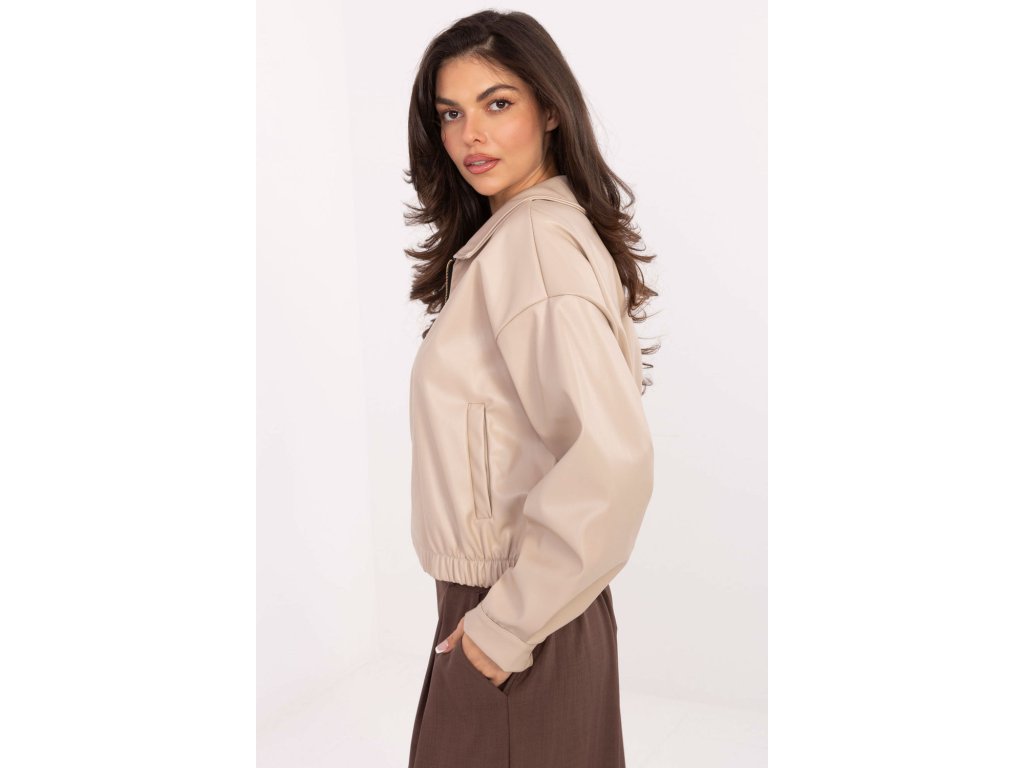Krátká přechodná dámská bunda z ekokože v ležérním stylu, ideální na každodenní vycházky v podzimní-zimní-jarní sezóně. Vyrobená z kombinace polyesteru a polyuretanu, spojuje módní vzhled s odolností materiálu. Model má široký límec, který dodává celku charakter, a praktické kapsy na zip. Zapínání na zip zaručuje pohodlí používání a hladká tkanina zdůrazňuje minimalistický, moderní design. Bundu skvěle poslouží jako lehká vrstva pro zahřátí v chladnějších dnech, kombinující funkčnost s módním ležérním stylem.