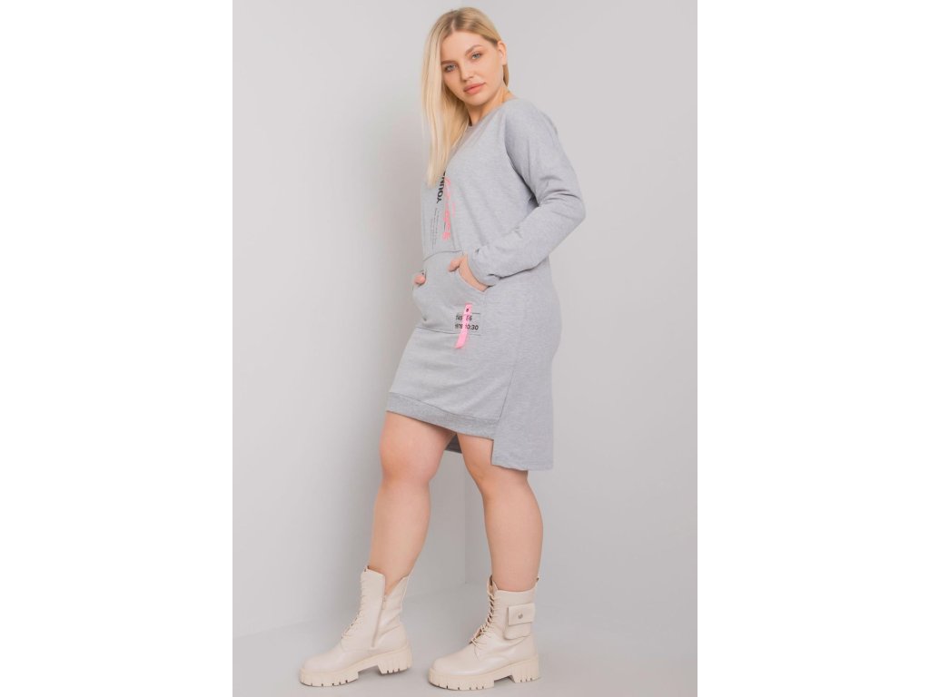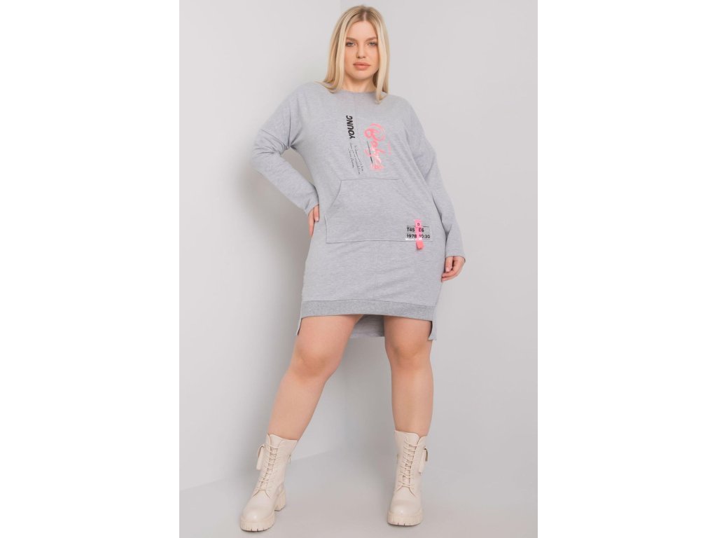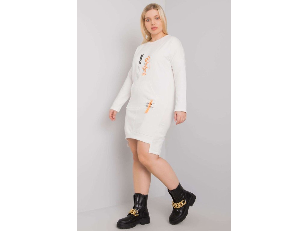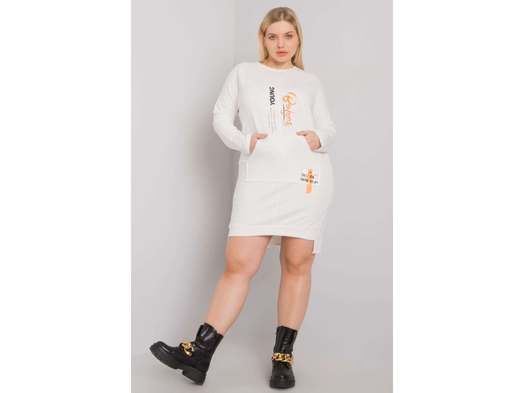 Dámské plus size šaty s kapsou v barvě ecru. Šaty s dlouhými rukávy.
