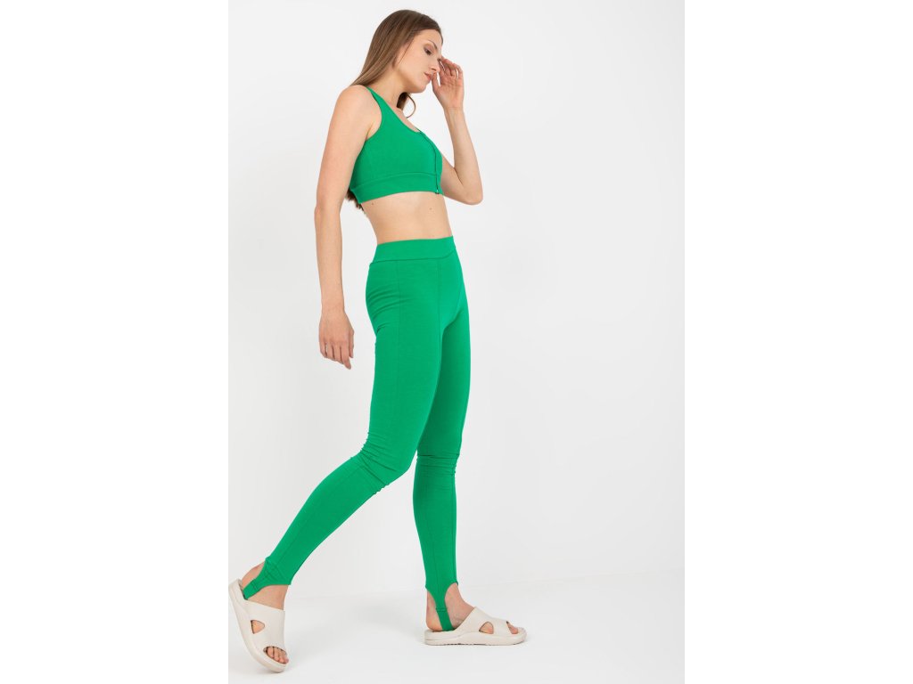 Zelené legíny s vysokým sedem a širokým elastickým pasem. Ideální pro mnoho stylů.