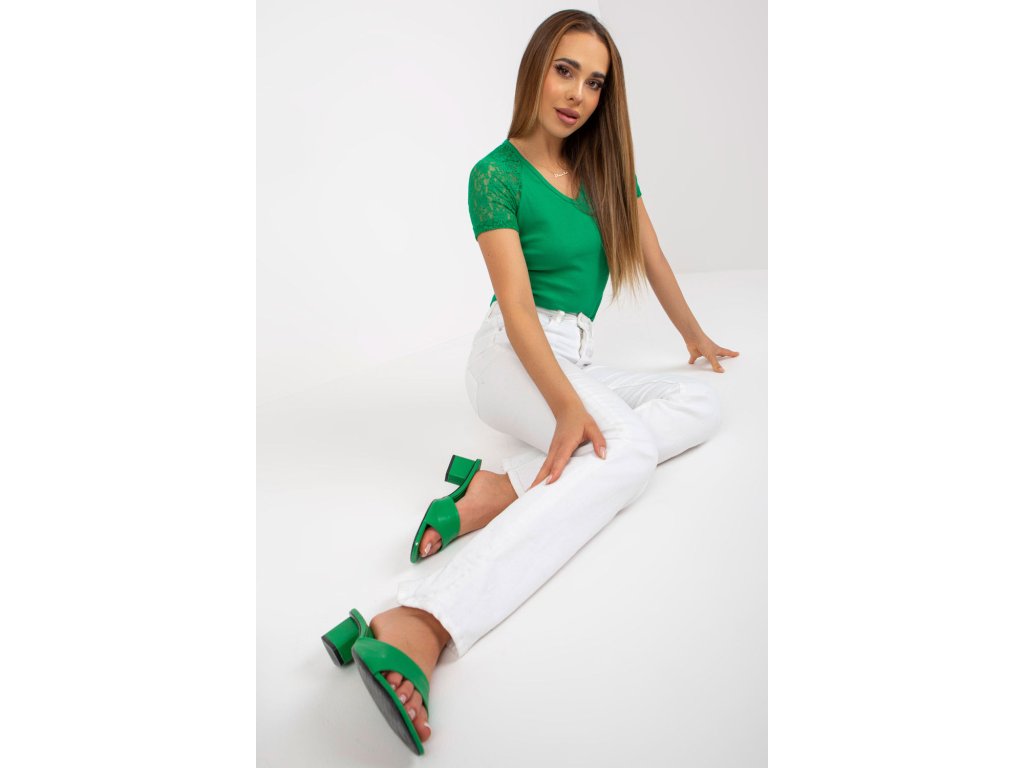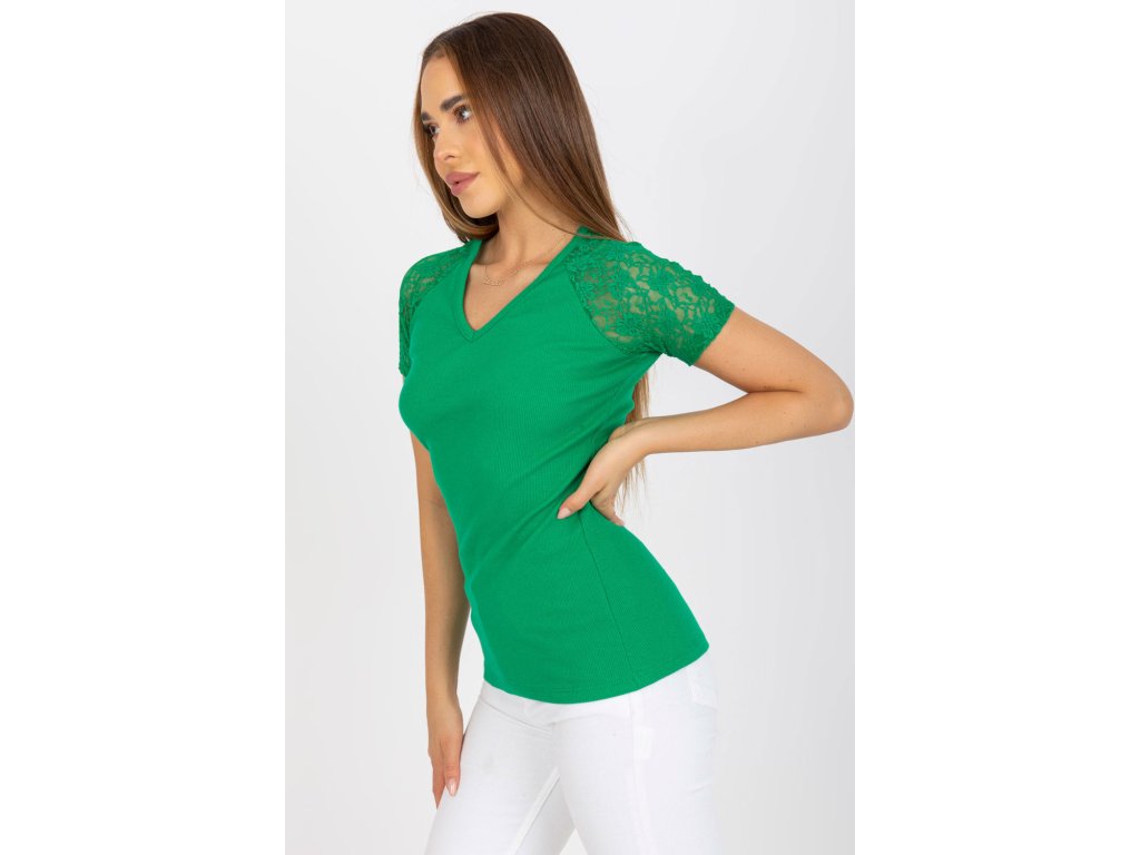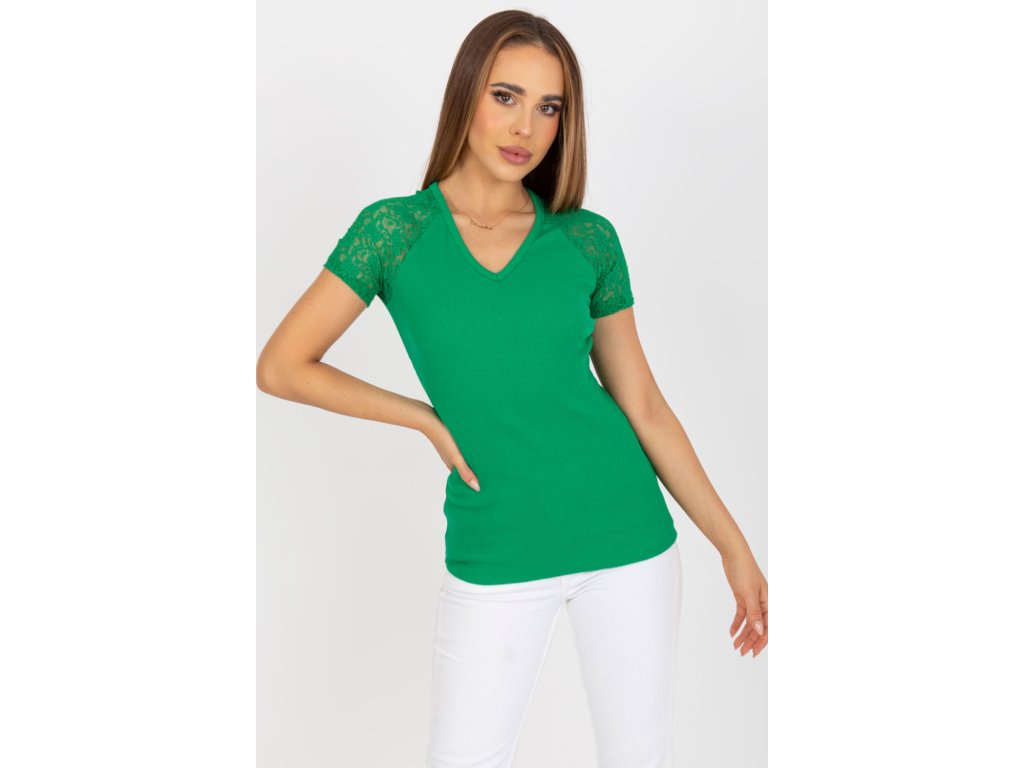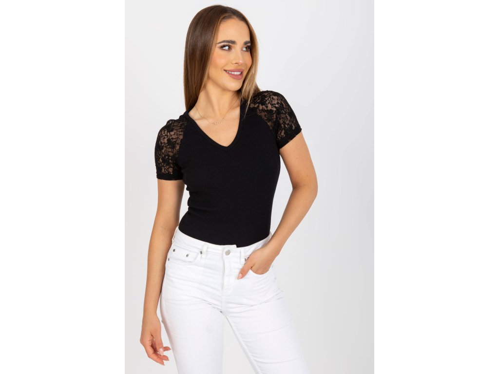 Halenka s krátkými rukávy a srdíčkovým výstřihem. Krajkové rukávy dodávají tomuto návrhu na eleganci.