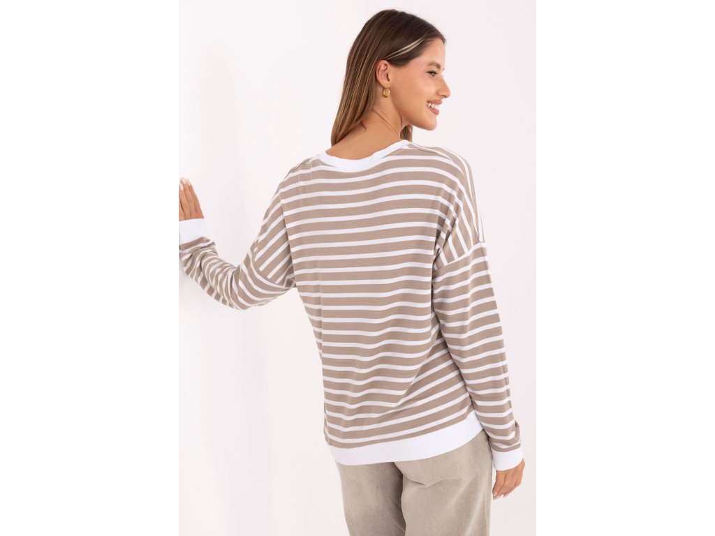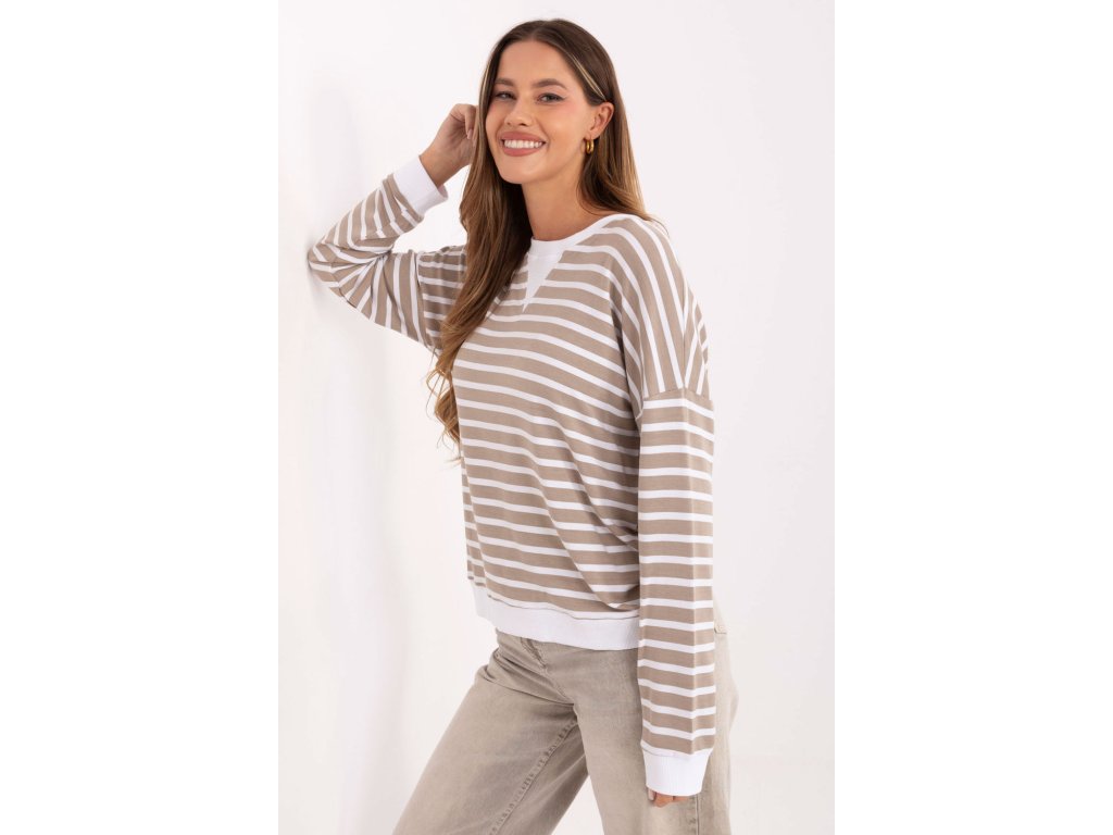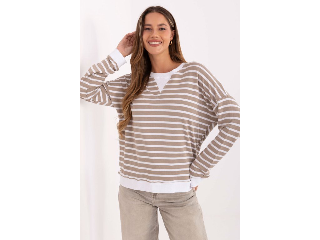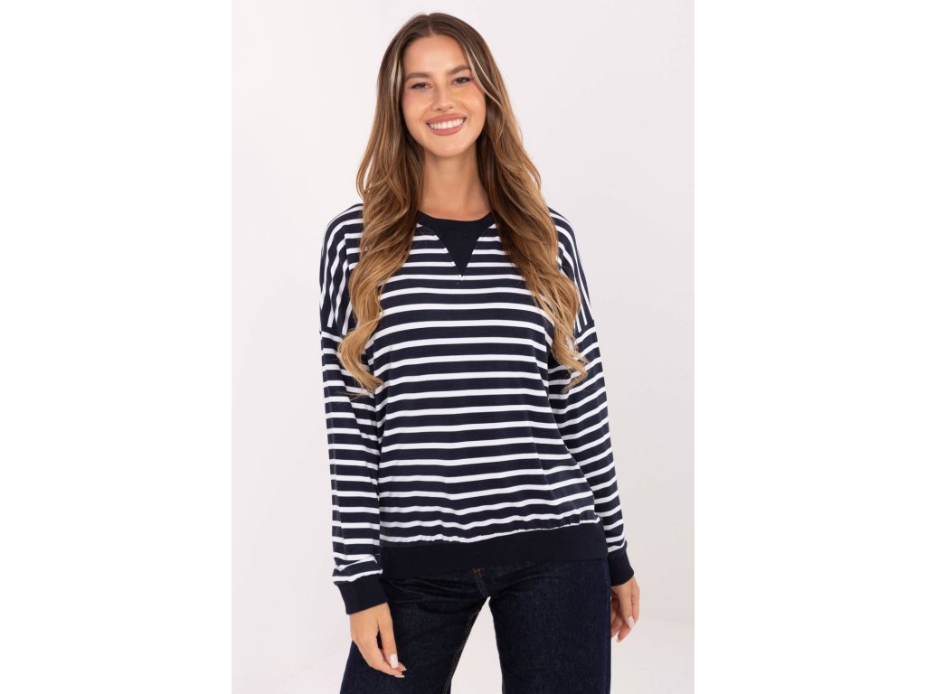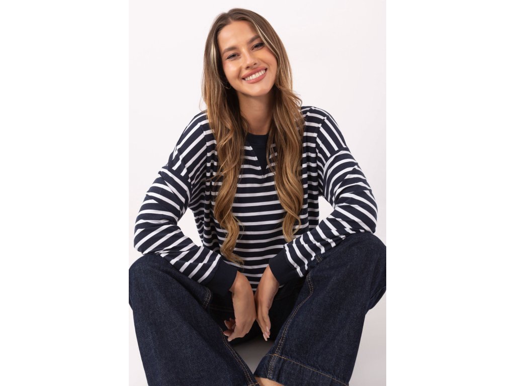 Casual dámský pruhovaný oversized top je pohodlný a stylový návrh na každý den. Vyrobený z měkkého micro modalu s přídavkem elastanu, poskytuje pohodlí a volnost pohybu. Standardní délka modelu s dlouhým rukávem a klasickým kulatým výstřihem je dokončena lemováním, které topu dodává moderní charakter a decentně zdůrazňuje siluetu. Ideální pro každodenní, neformální stylizace, jak s kalhotami, tak s sukní.