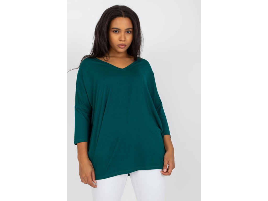 Halenka plus size s 3/4 rukávy a srdíčkovým výstřihem.