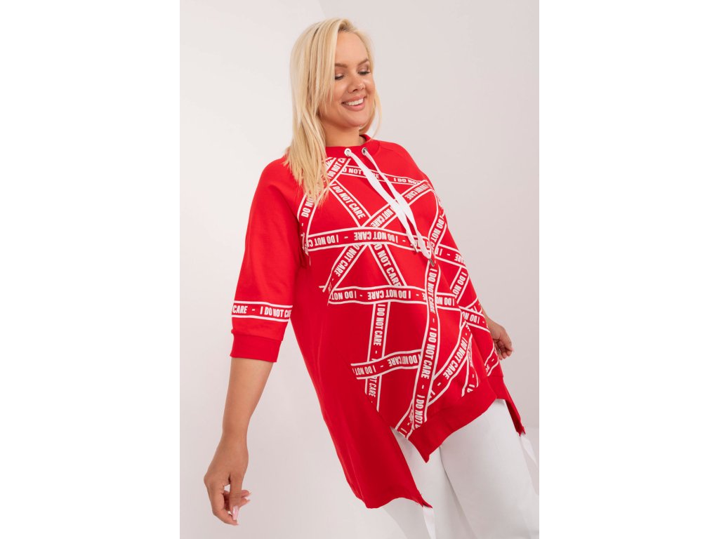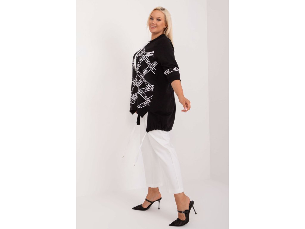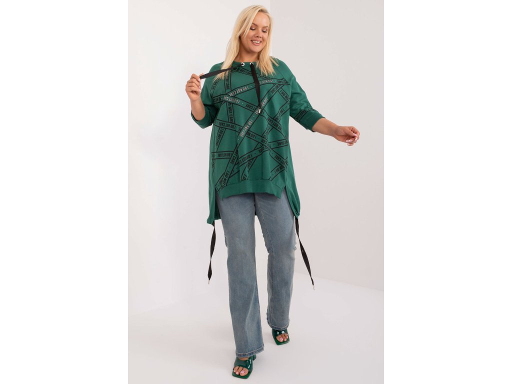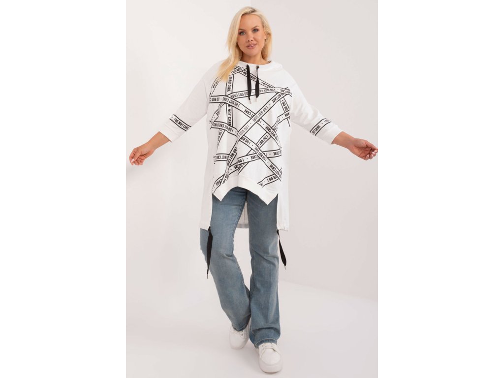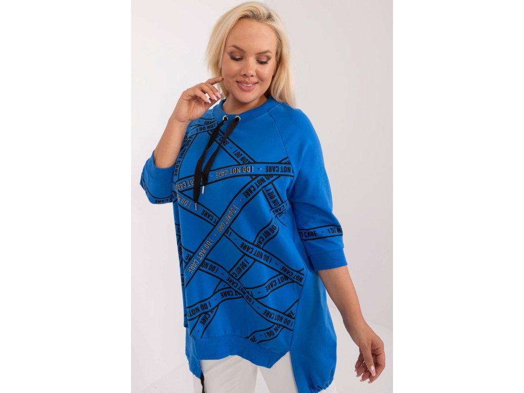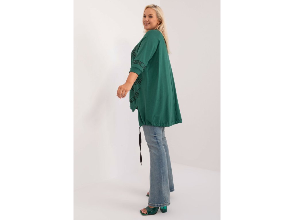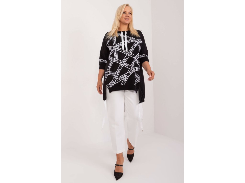 Asymetrická halenka plus size je každodenní kousek s jednoduchým, elegantním střihem, ideální pro každodenní nošení. Je vyrobena z bavlny s přídavkem elastanu, což zaručuje pohodlí a lehký střih. Prodloužený střih a 3/4 rukávy zajišťují volnost pohybu a pohodlí. Halenka má kulatý výstřih, který jí dodává klasický vzhled. Na přední straně je nápis zdobený kamínky, který dodává halence módní a originální charakter. Ideální pro každodenní stylizaci, ať už do práce, nebo na běžné vycházky.