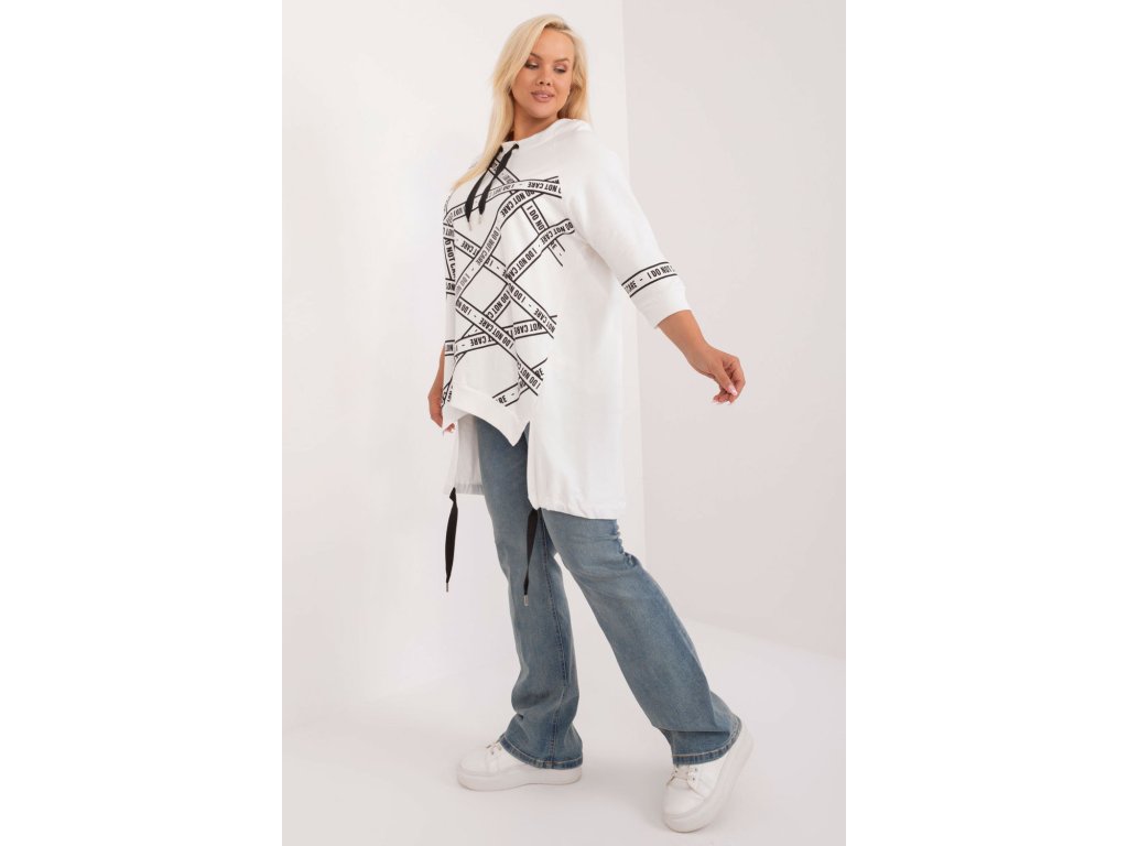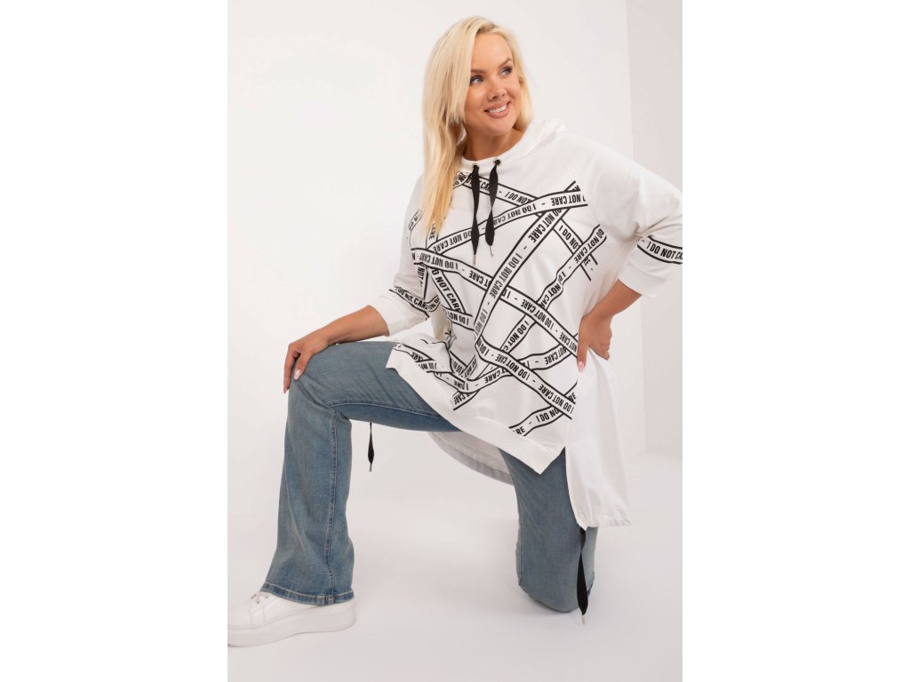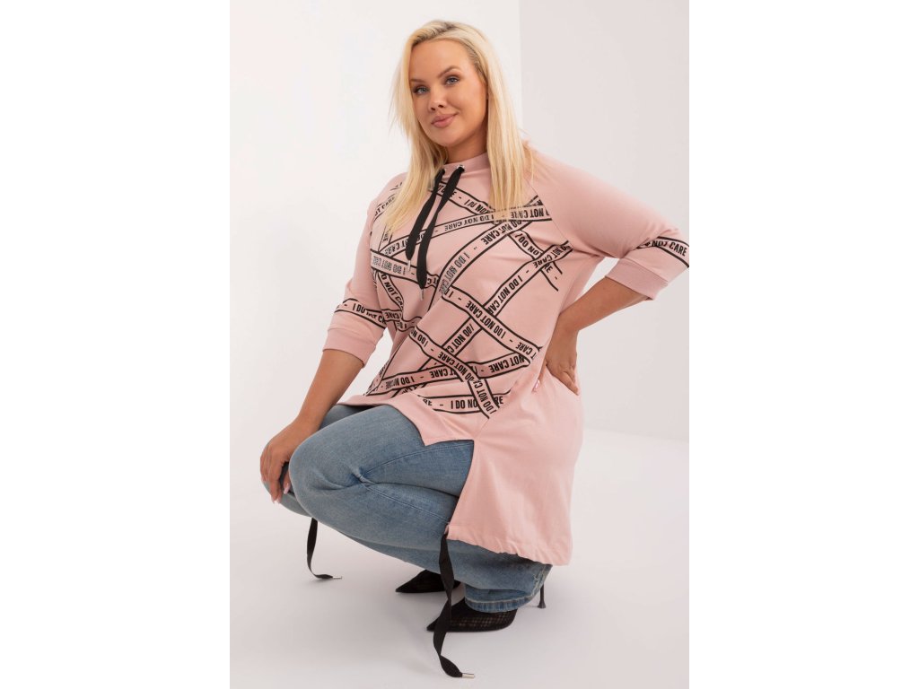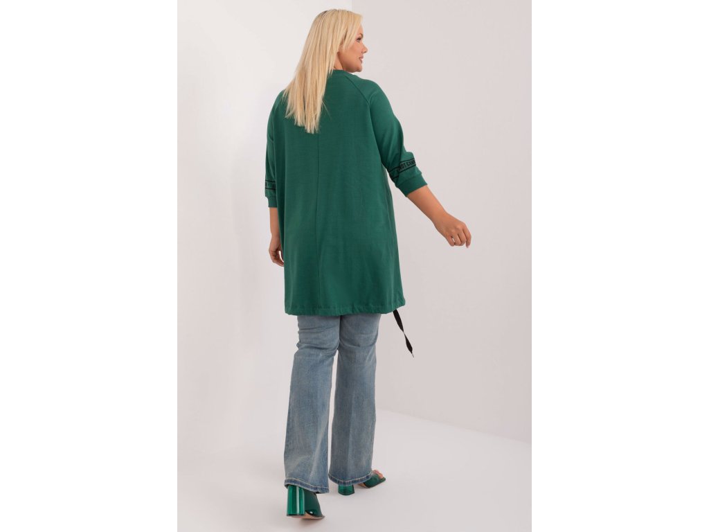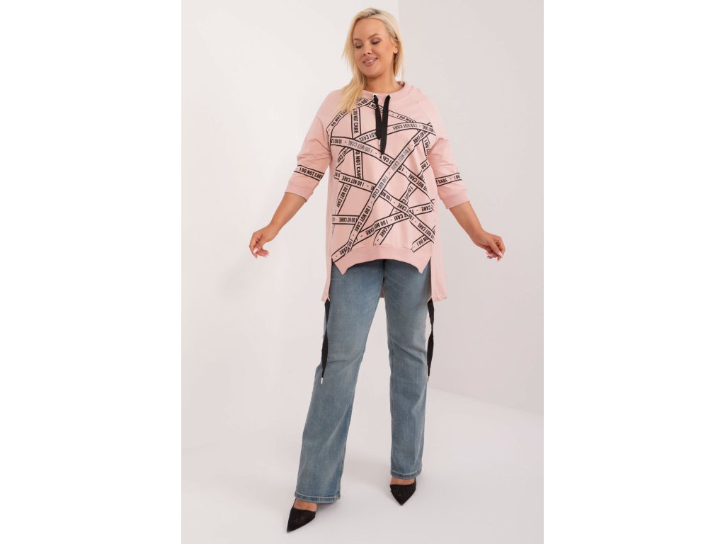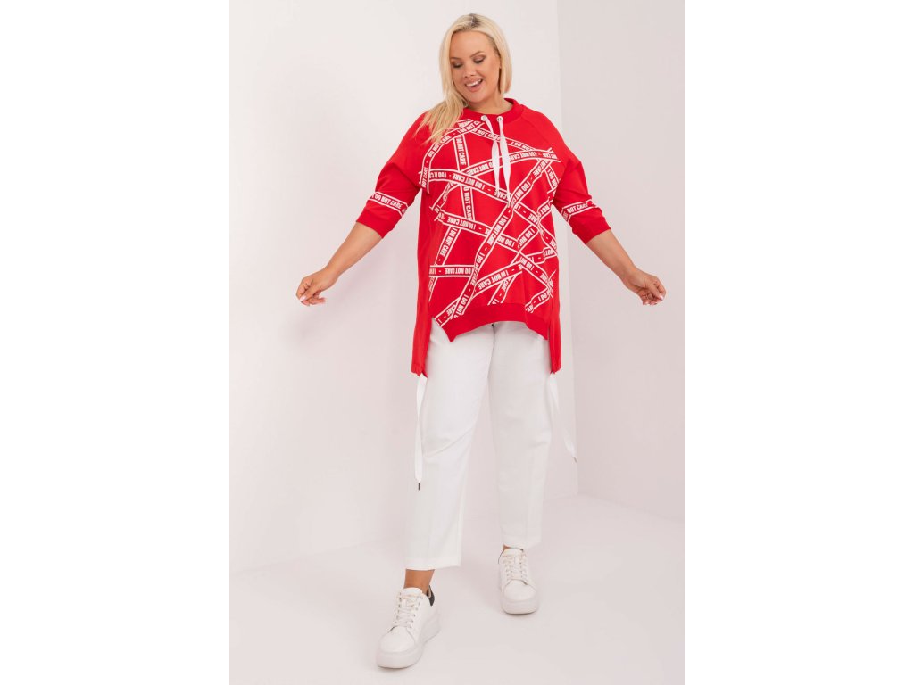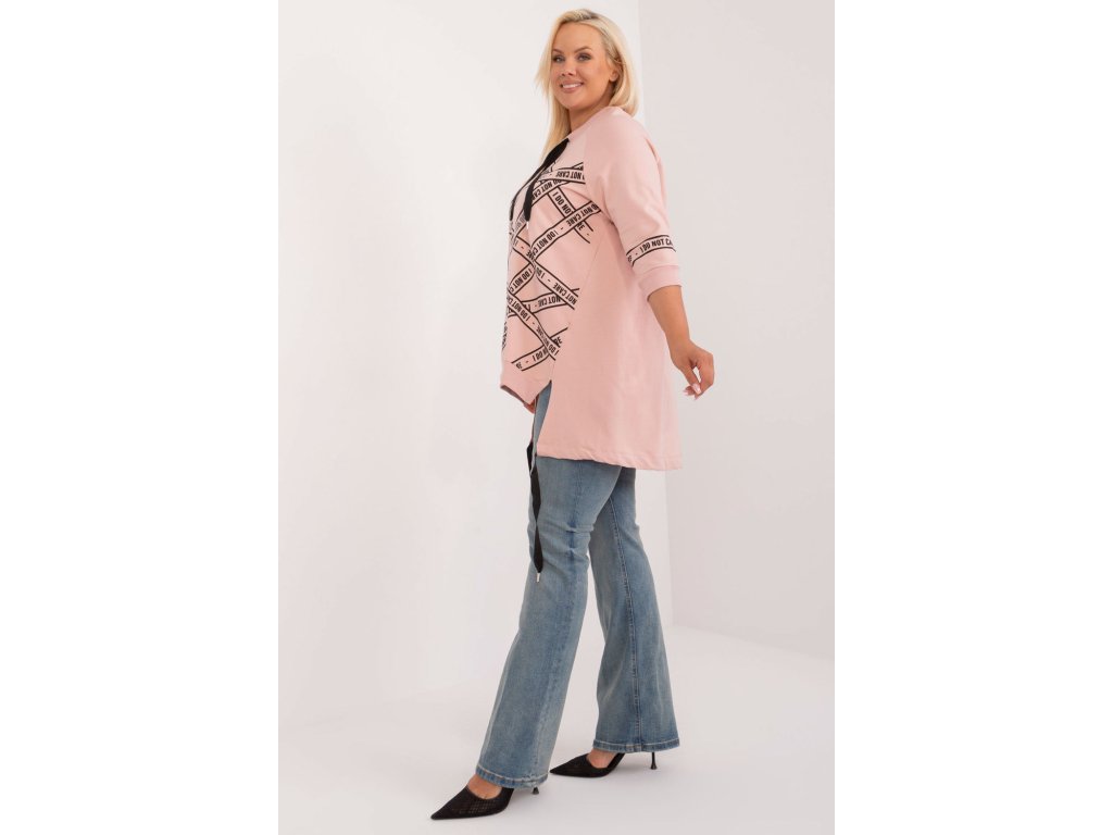 Asymetrická halenka plus size je každodenní kousek s jednoduchým, elegantním střihem, ideální pro každodenní nošení. Je vyrobena z bavlny s přídavkem elastanu, což zaručuje pohodlí a lehký střih. Prodloužený střih a 3/4 rukávy zajišťují volnost pohybu a pohodlí. Halenka má kulatý výstřih, který jí dodává klasický vzhled. Na přední straně je nápis zdobený kamínky, který dodává halence módní a originální charakter. Ideální pro každodenní stylizaci, ať už do práce, nebo na běžné vycházky.