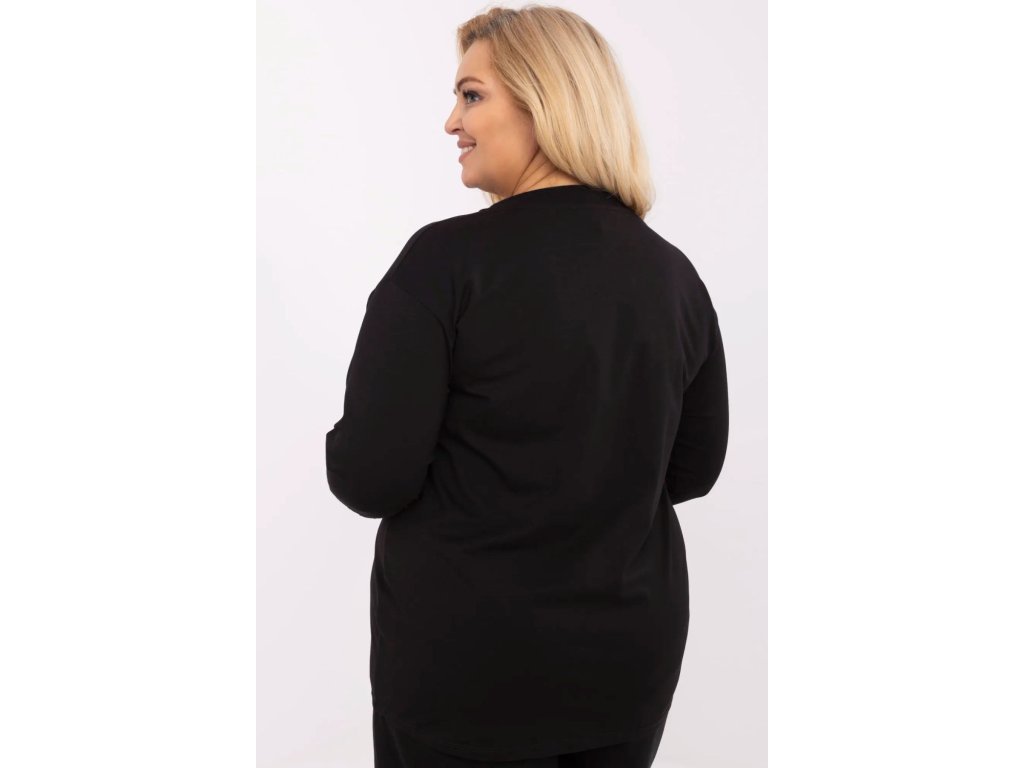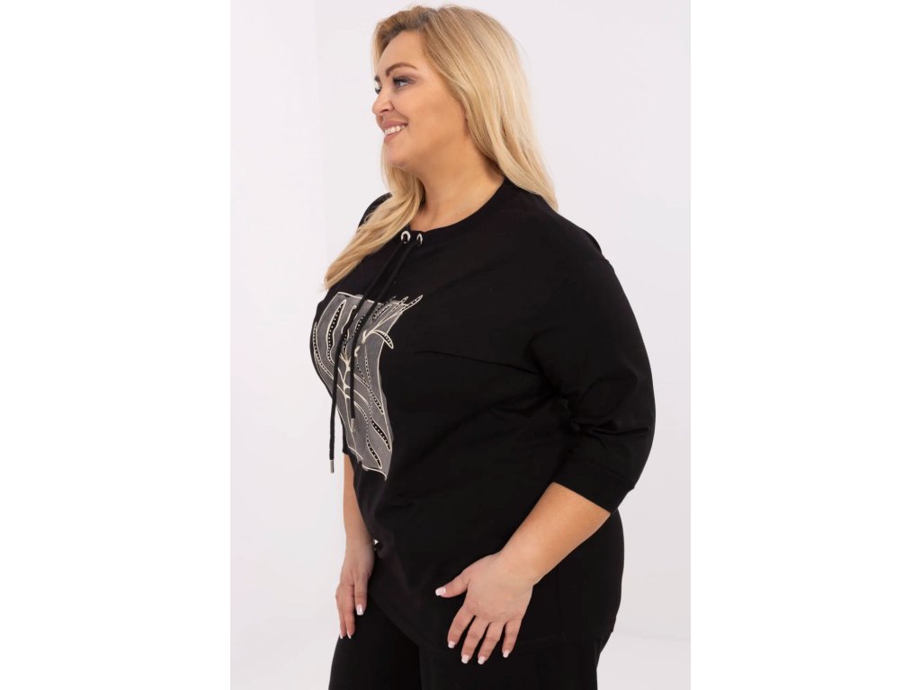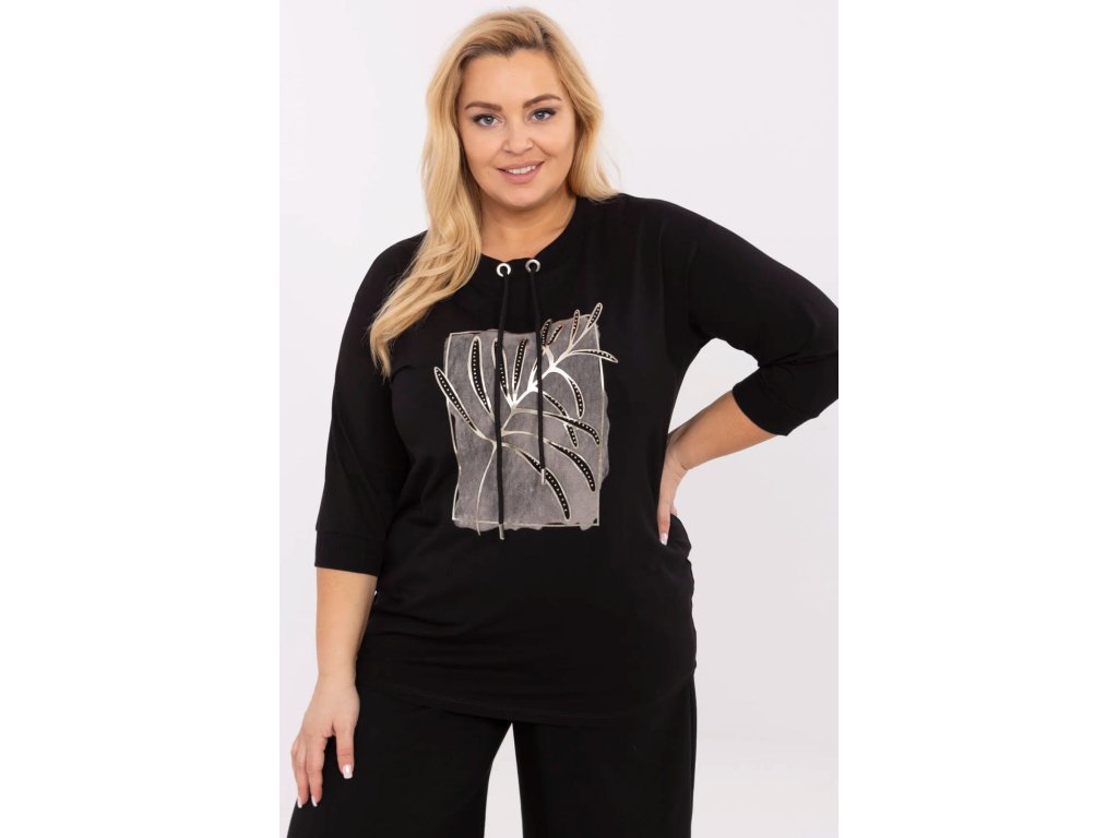 Tento volný svetr je ideální nabídkou pro každodenní nošení pro ženy, které oceňují pohodlí a jemné detaily. Vyrobený z měkké bavlny s přídavkem elastanu, skvěle se přizpůsobuje postavě a poskytuje pohodlí po celý den. Model s standardní délkou, s 3/4 rukávem a klasickým, kulatým výstřihem zdobeným šňůrkami k zavázání. Přední stranu svetru zdobí potisk doplněný jemnými flitry, které přidávají celku lehce lesklý akcent. Bez zapínání, což znamená, že je snadné si ho obléci a je ideální pro každodenní stylizace.