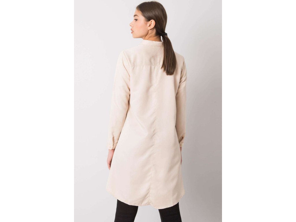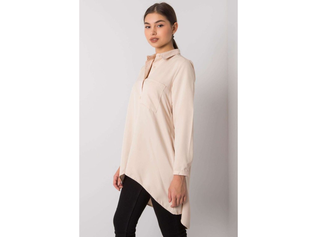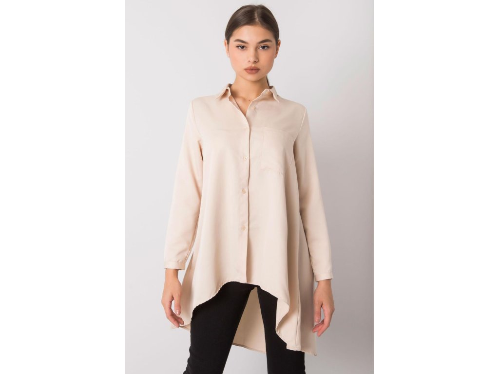 Béžová košile na knoflíky s prodlouženým zadním dílem. Skvěle se hodí pro mnoho příležitostí.