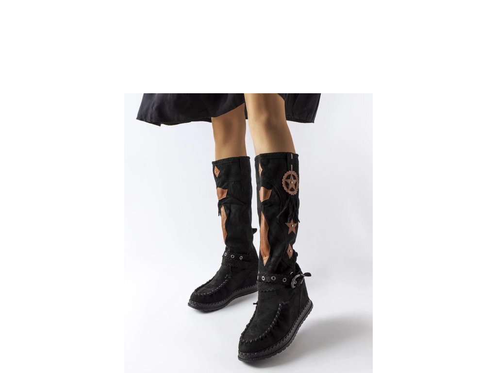 Černé boty Putignano v boho stylu jsou ideální volbou pro ženy, které ocení eleganci a pohodlí. Tyto kozačky jsou vyrobeny z vysoce kvalitní ekologické kůže, která zaručuje odolnost a pohodlí při nošení. Díky jejich modernímu designu s kotvou jsou nejen stylové, ale také velmi pohodlné. Jsou ideální pro chladnější dny a dodají jedinečný nádech každé stylizaci. Tyto nazouvací boty v klasické černé barvě jsou mimořádně univerzální a snadno je sladíte s různými outfity. Koupí těchto bot investujete do nadčasové elegance a pohodlí na mnoho dalších sezón.