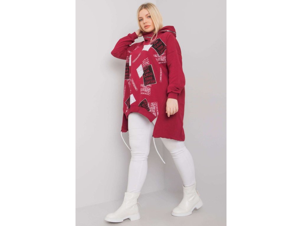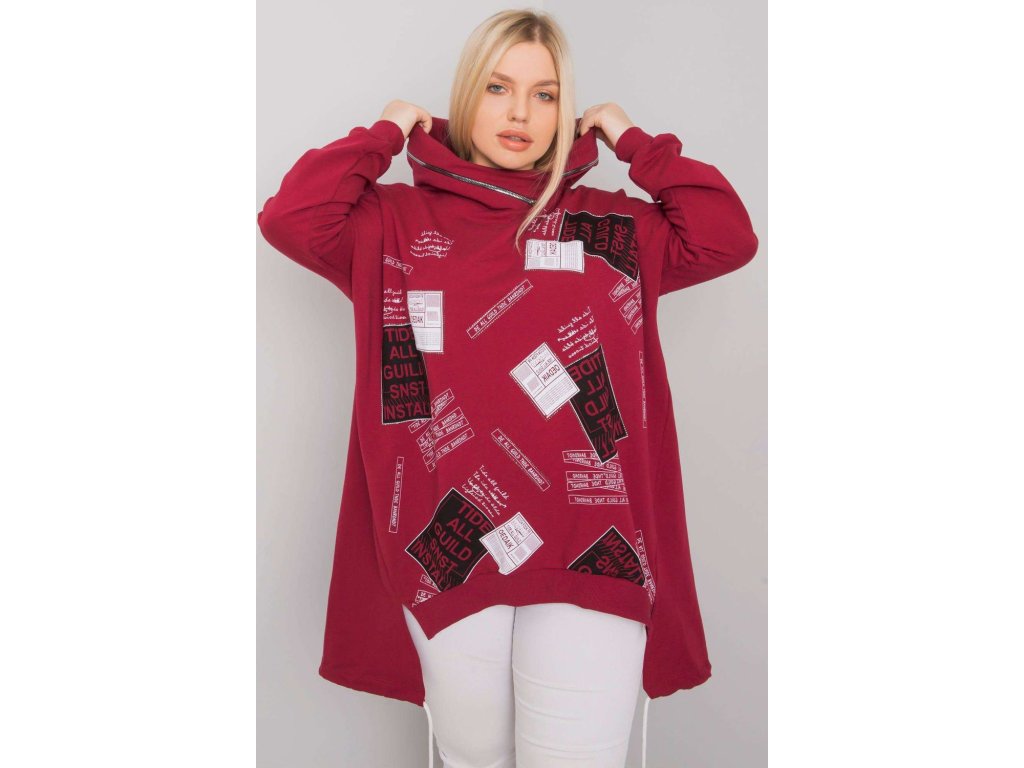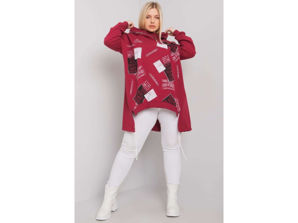 Bordó mikina s potiskem a aplikací. Mikina má kapuci a dlouhé rukávy.