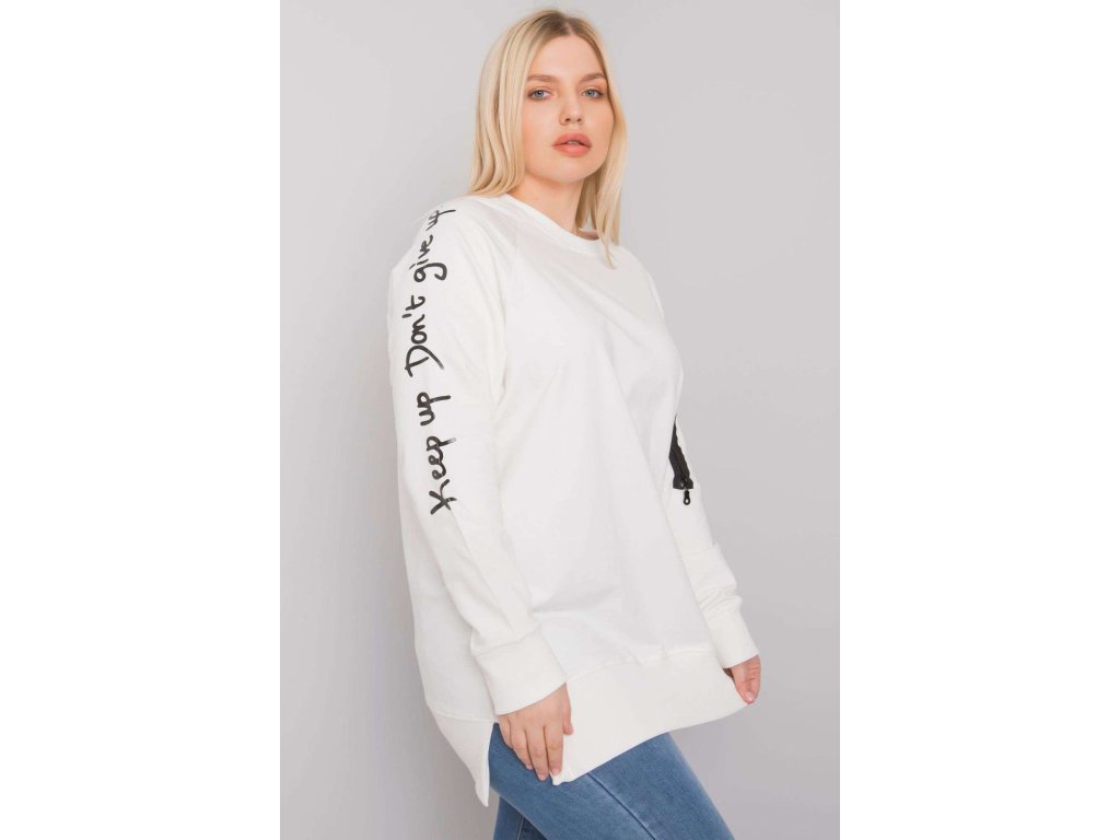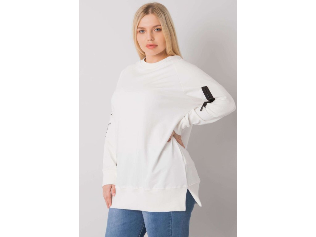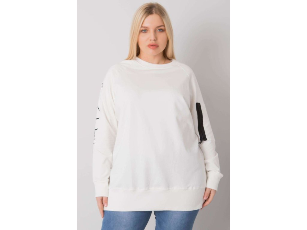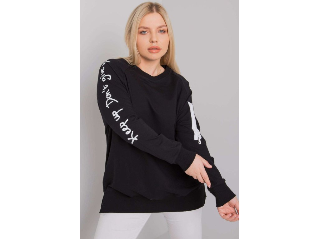 Černá dámská plus size mikina s dlouhými rukávy. Ozdobný zip na rukávu.