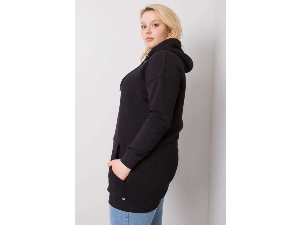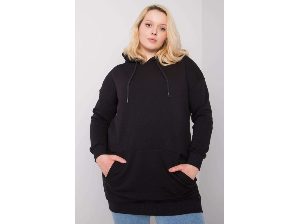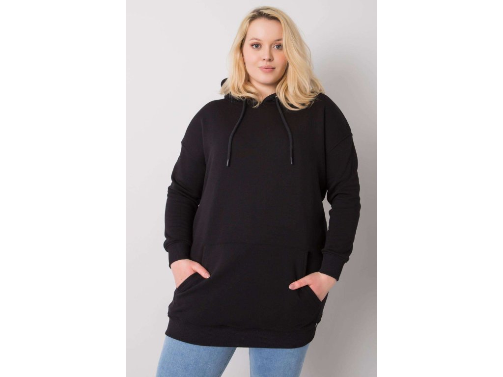 Černá bavlněná mikina plus size s kapucí. Mikina v prodlouženém střihu s kapsami.