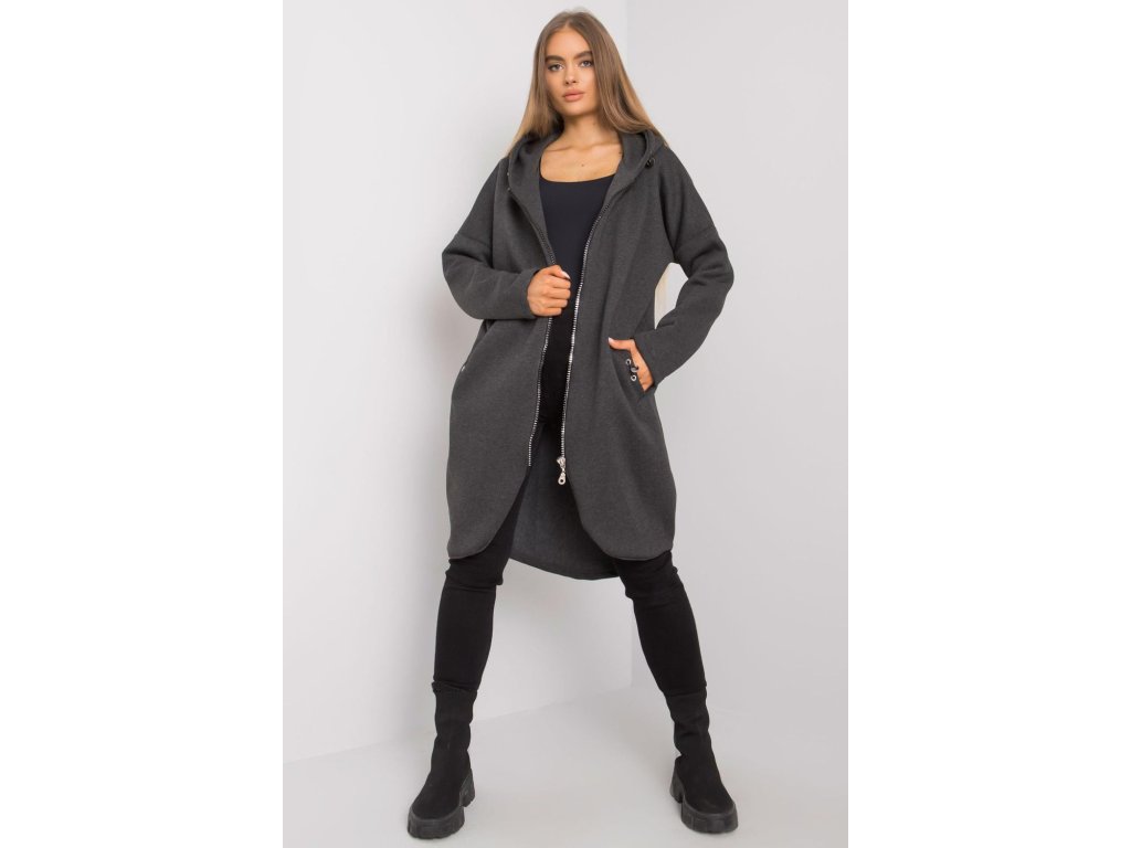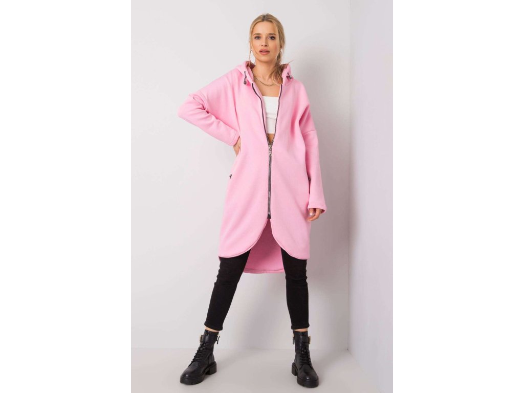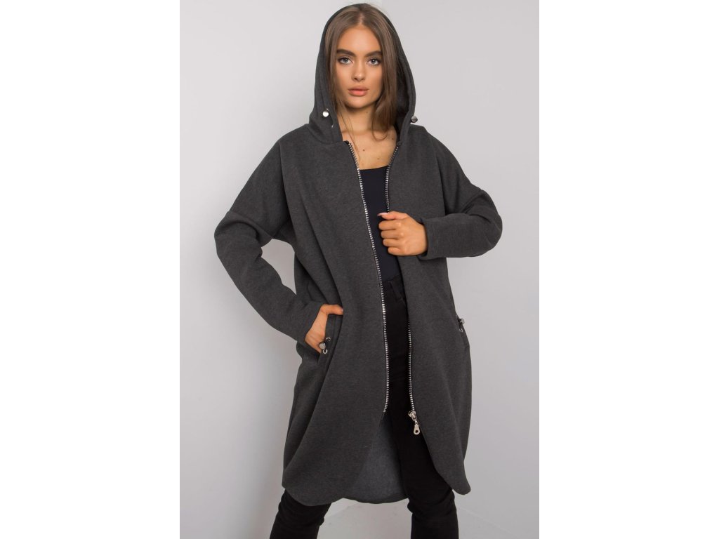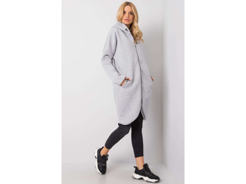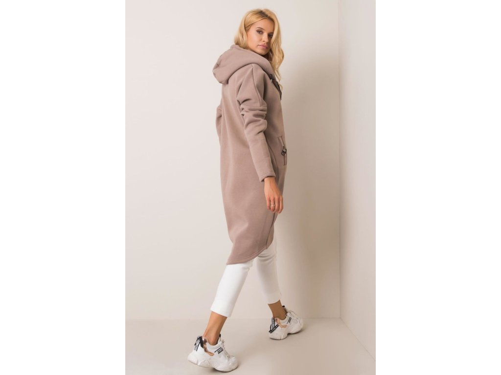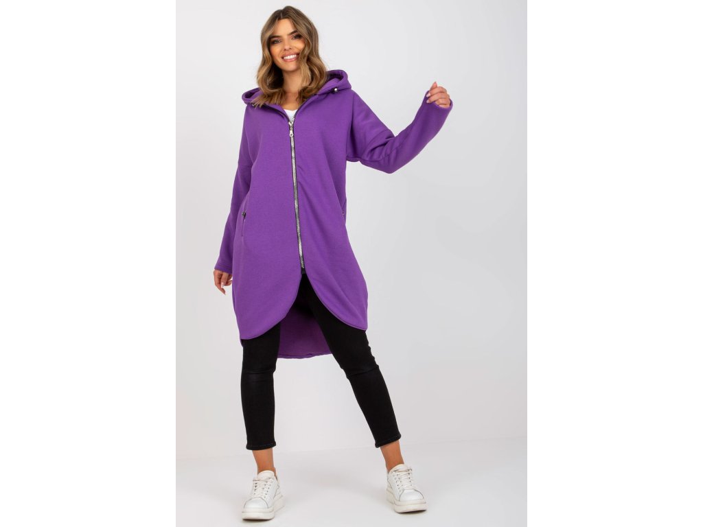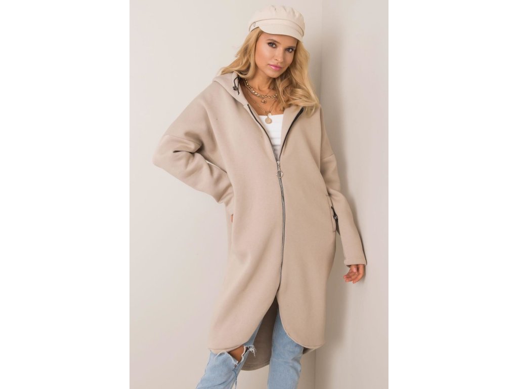 Mikina s prodlouženým střihem a zapínáním na zip. Mikina s dlouhými rukávy a kapucí. Kapsy na bocích.