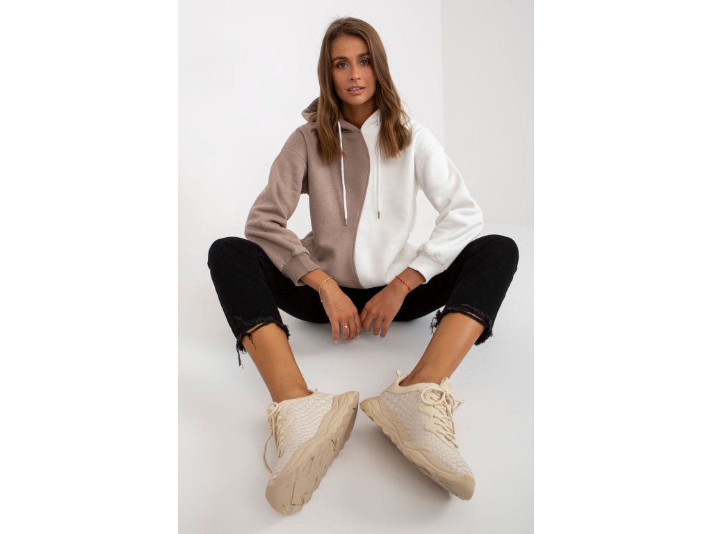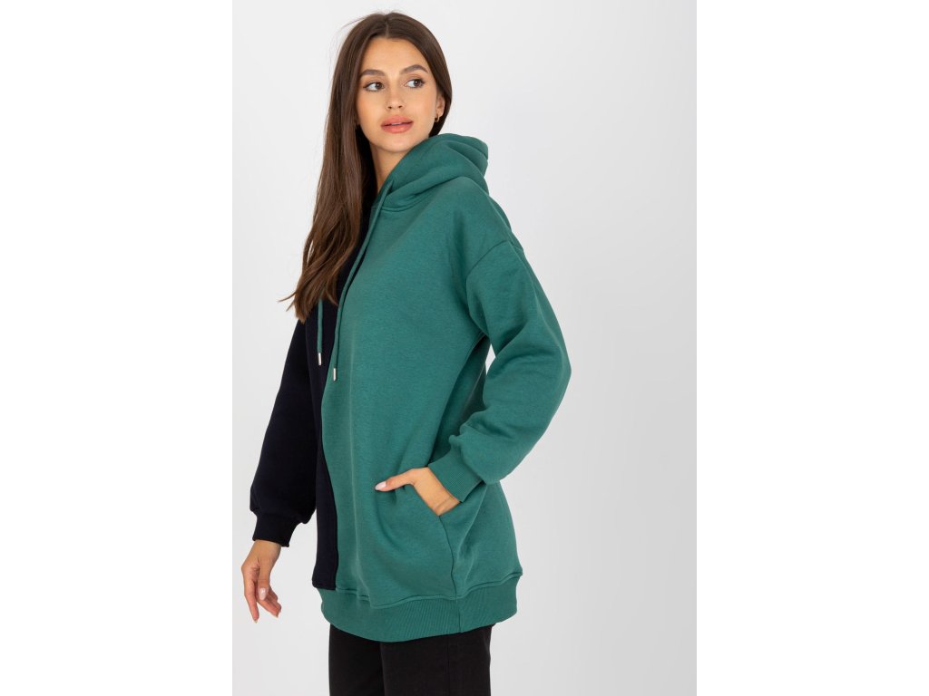 Dvoubarevná dámská mikina s dlouhými rukávy a kapucí. Kapsy na bocích.