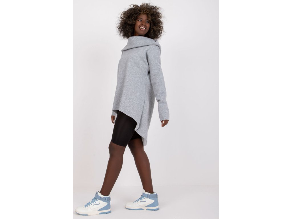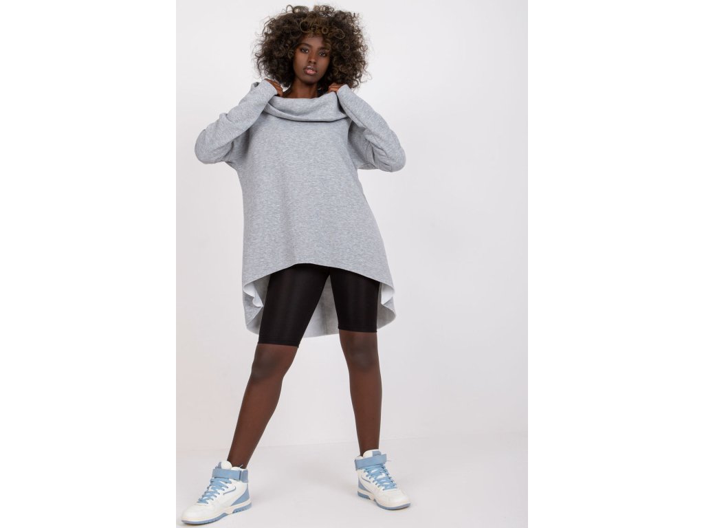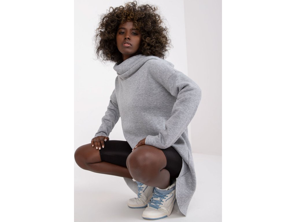 Dámská mikina s dlouhým rukávem a kapucí. Volná mikina s asymetrickým spodním okrajem.