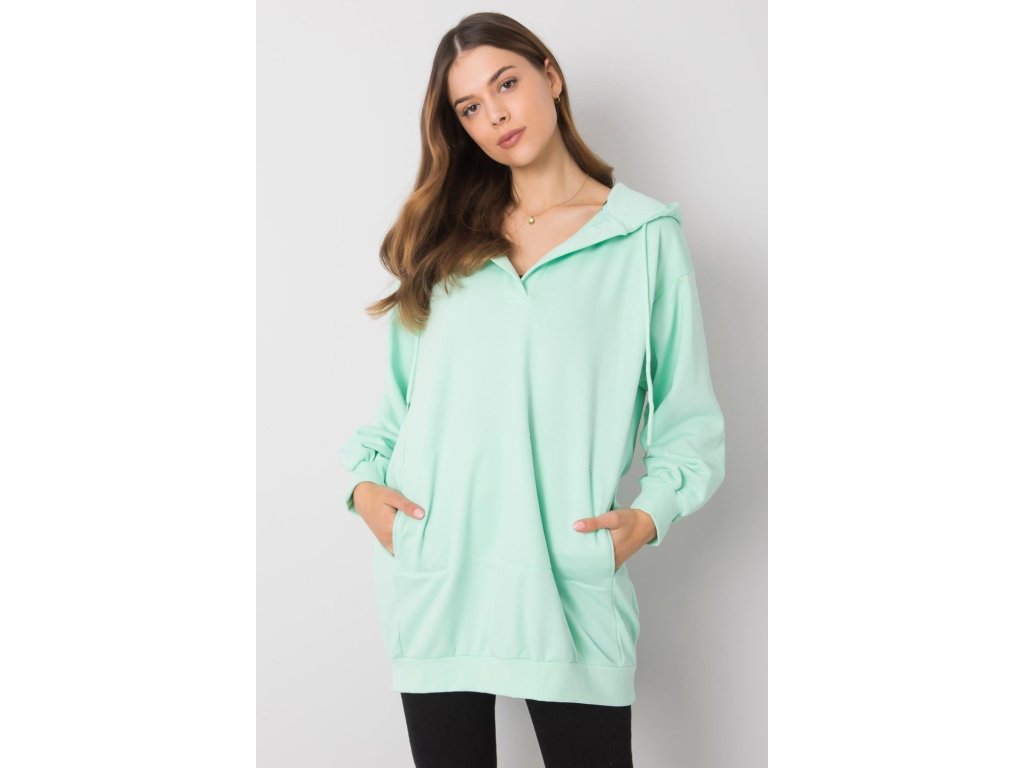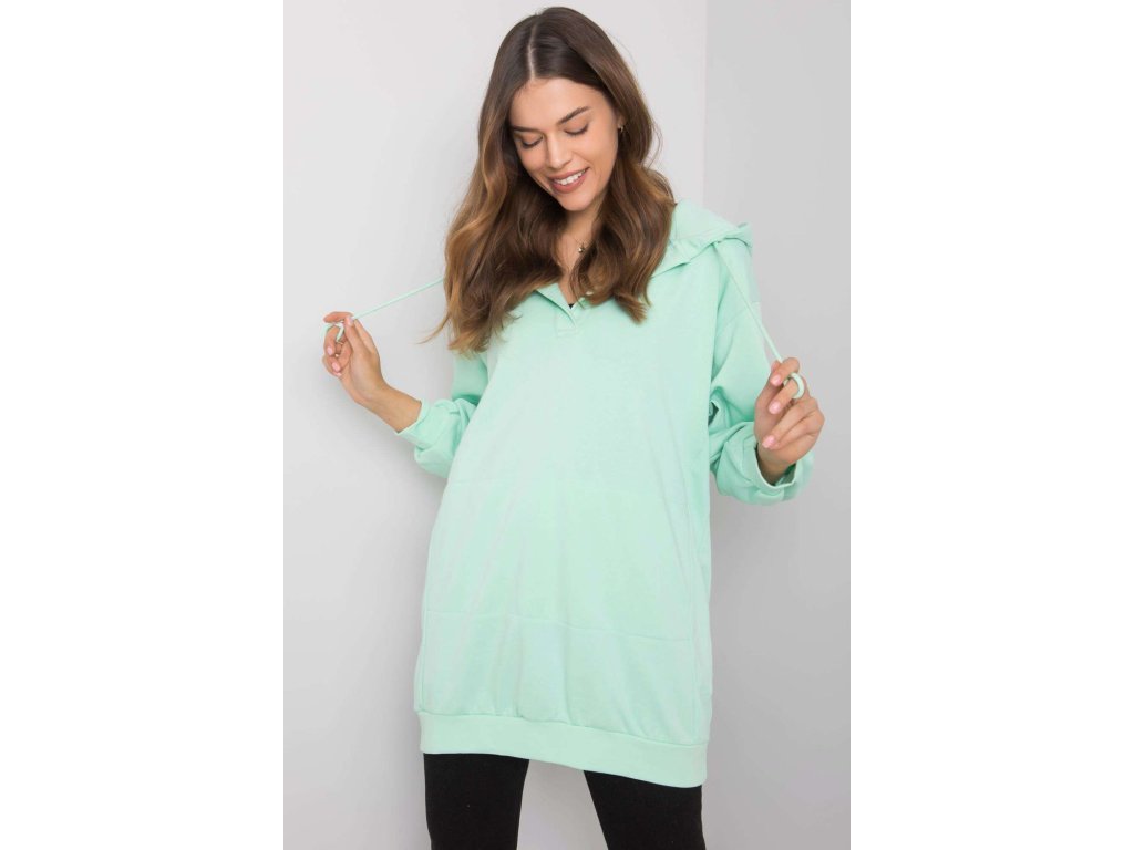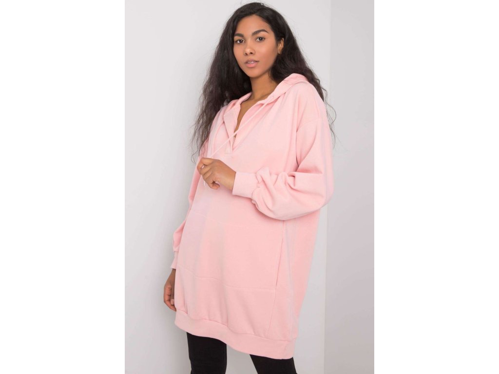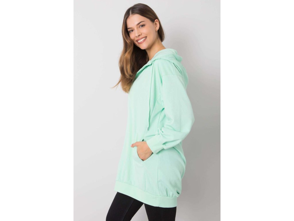 Dámská mikina prodlouženého střihu s kapucí. Klokaní kapsa na přední straně. Ideální pro každodenní nošení a další účely.