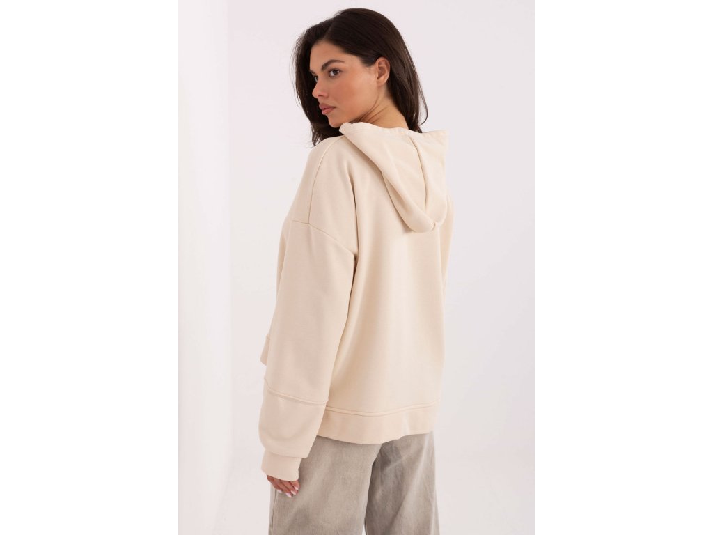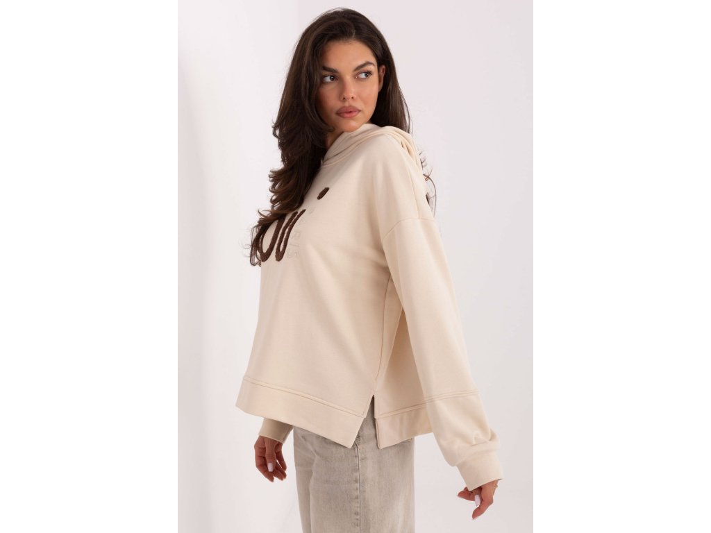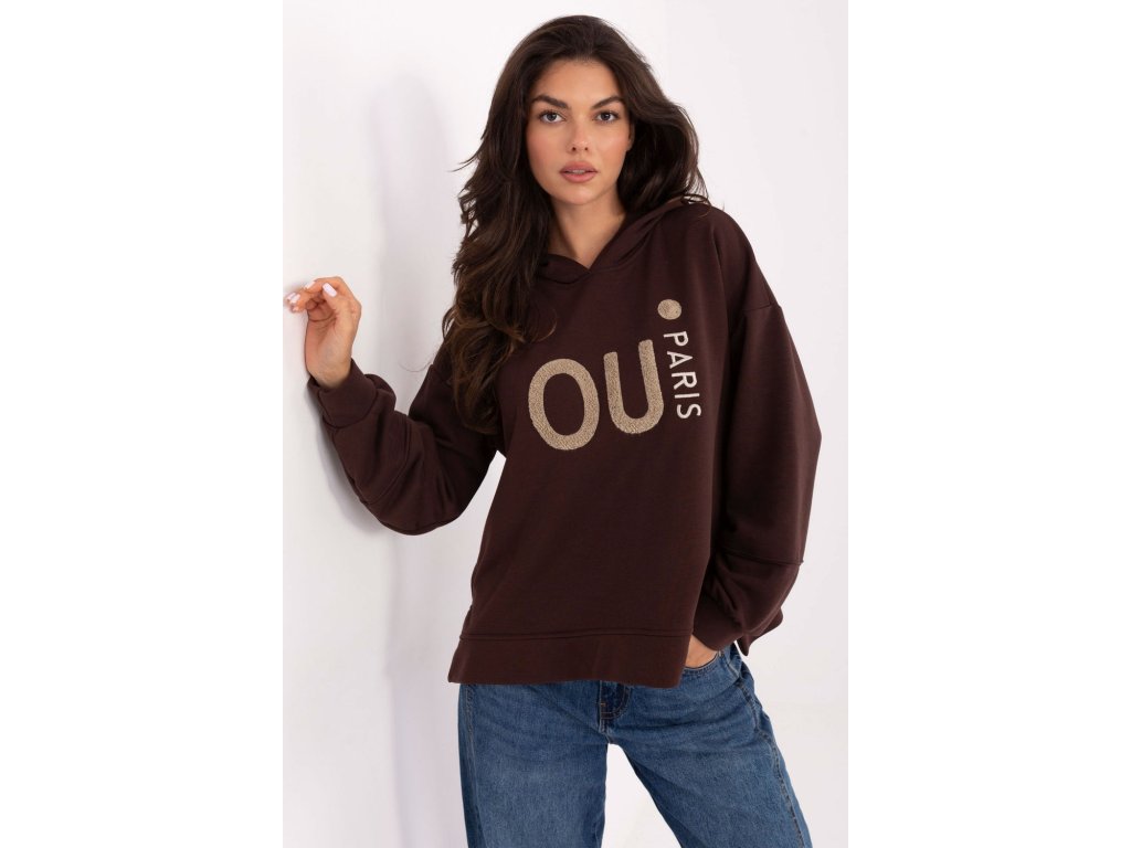 Casual dámská mikina standardní délky, ideální na každodenní stylizace. Vyrobená z vysoce kvalitní bavlny s příměsí polyesteru, je měkká, příjemná na dotek a odolná. Model s dlouhým rukávem a praktickou kapucí. Přední stranu zdobí moderní vyšívání a nápisy, které mikině dodávají charakter a originalitu. Po stranách, dole, jsou jemné rozparky, které zvyšují pohodlí nošení a dodávají moderní vzhled. Skvělá volba na každý den spojuje pohodlí, funkčnost a módní design.
