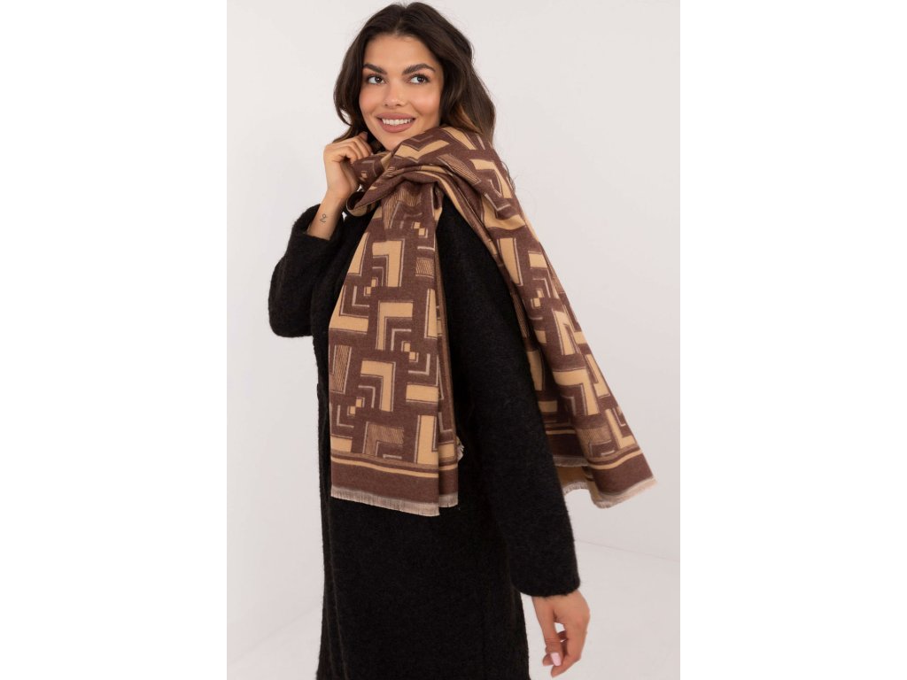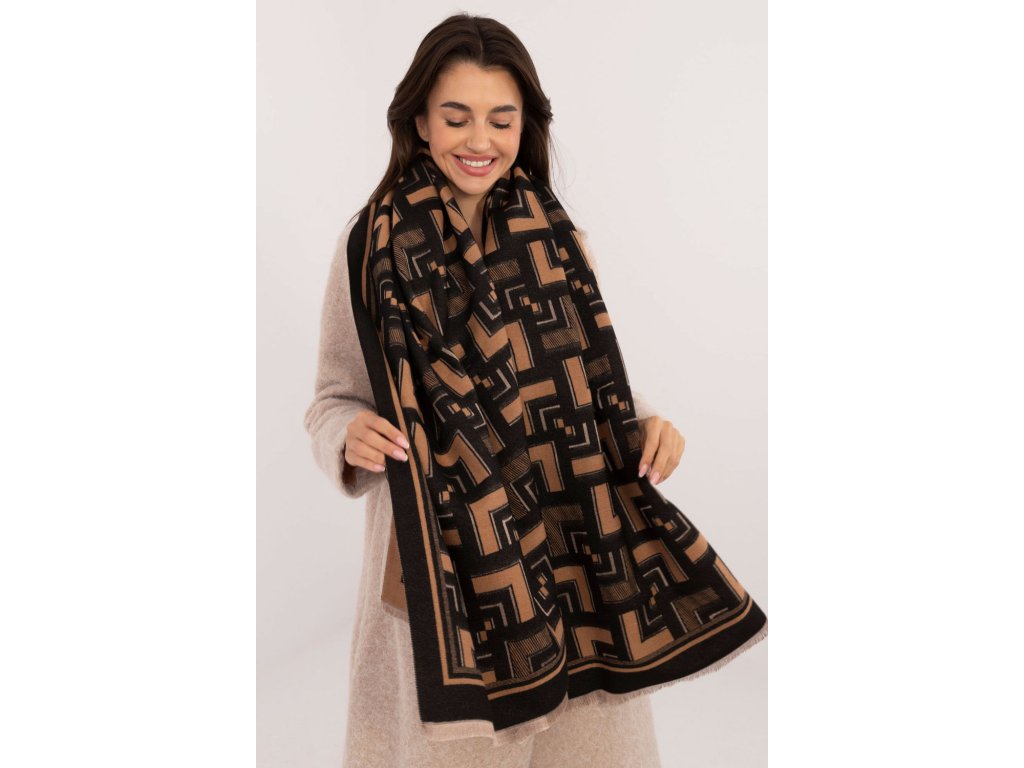 Stylová šála dlouhá 190 cm, vyrobená z měkké a příjemné viskózy. Má geometrický vzor, který dodá moderní a elegantní nádech každé stylizaci. Jemné malé střapce na koncích šály dodávají lehkost a originalitu. Je ideální pro chladnější dny a skvěle se bude hodit jak ke každodenním, tak k elegantnějším kombinacím.