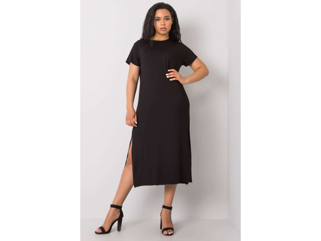 Letní šaty plus size pro každodenní nošení s krátkými rukávy a rozparky na bocích. Ideální volba pro mnoho příležitostí.