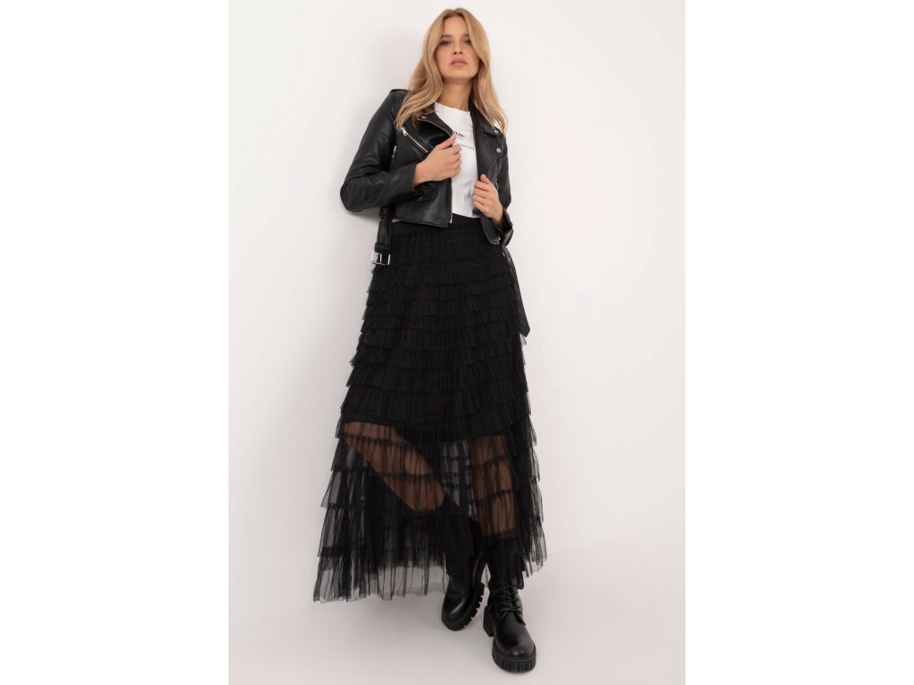 Elegantní tylová sukně s volány je stylovým návrhem jak na každodenní vycházky, do práce, tak i na slavnostní příležitosti nebo večírky. Vyrobená z lehkého polyesteru, má hladký vzor a midi délku, co jí dodává ženský a elegantní vzhled. Jemné volány dodávají sukní romantický charakter a zdůrazňují její elegantní styl. Bez zapínání a elastický pas zajišťují pohodlné nošení, a podšívka zaručuje pohodlí a zabrání průsvitnosti. Jedná se o výjimečnou sukní, která spojuje decentní eleganci s praktičností, ideální na různé příležitosti.