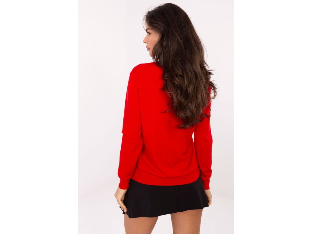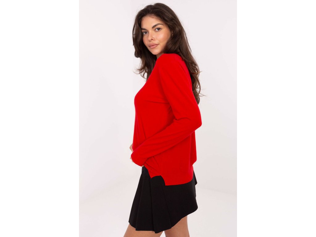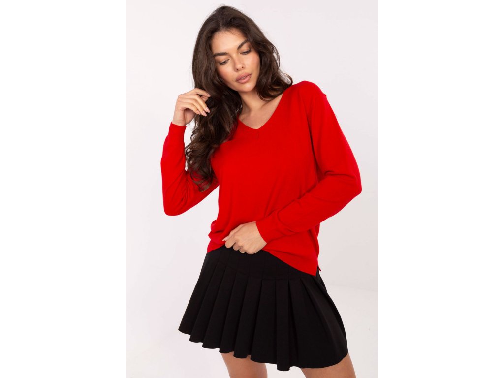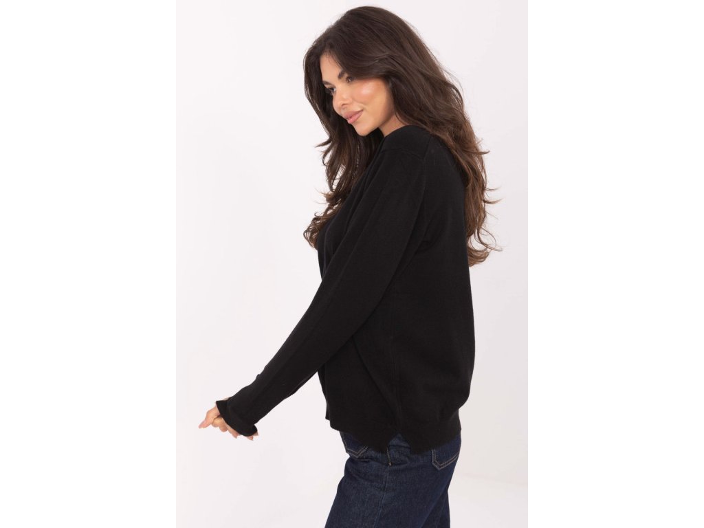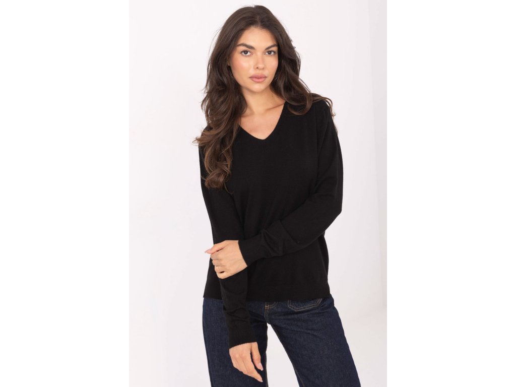 Elegantní dámský svetr s standardní délkou, vyrobený z měkké a elastické směsi viskózy, elastanu, modalu a polyamidu, která zajišťuje pohodlí nošení a přizpůsobení se postavě. Model má dlouhý rukáv a výstřih do V, jemně zdůrazňující linii krku. Svetr v hladkém, dominujícím vzoru se skvěle hodí do neformálních, každodenních i pracovních outfity. Velikostní štítek může ukazovat M/L, ale střih je menší, proto je doporučen pro osoby nosící velikost S nebo M. Chybějící zapínání zdůrazňuje jednoduchý a elegantní charakter svetra.