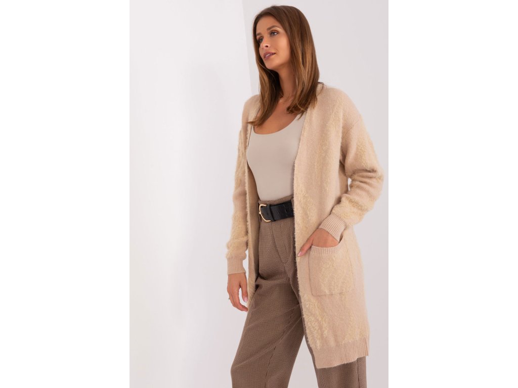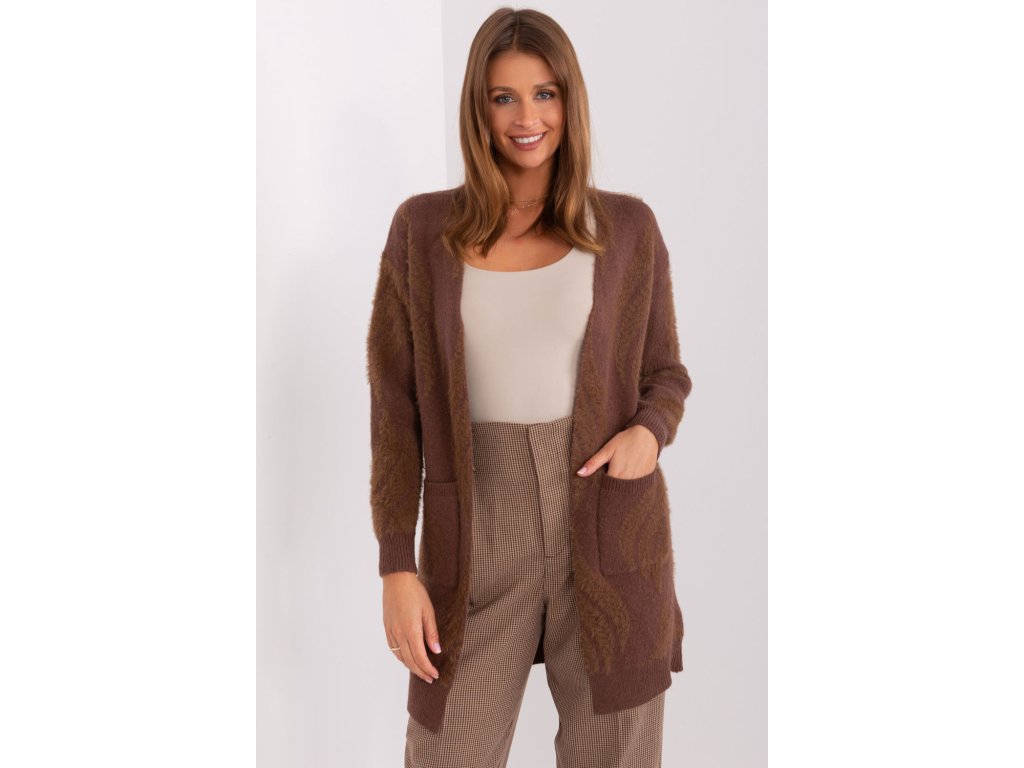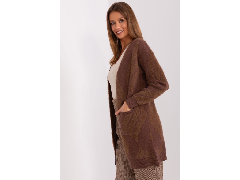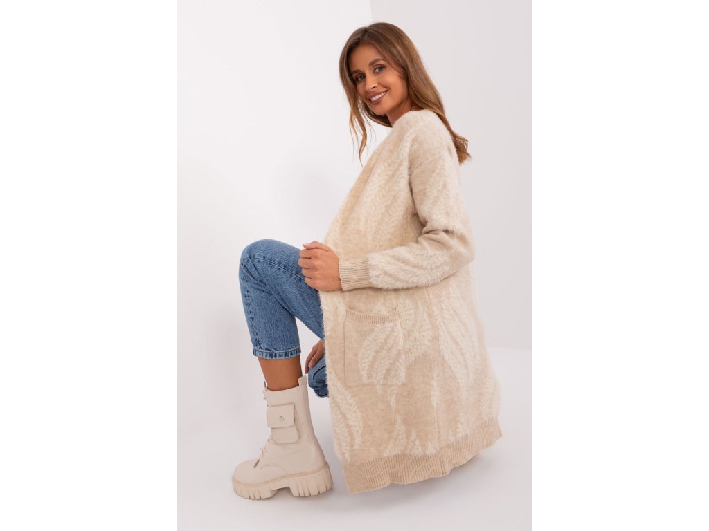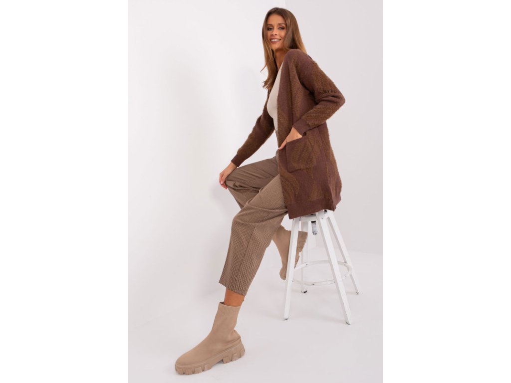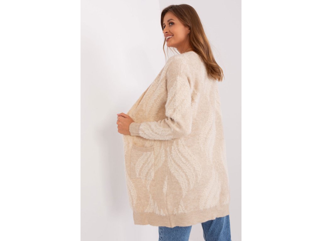 Tento svetr s přehozem je dokonalým kouskem do šatníku pro každodenní nošení. Je vyroben z pestré tkaniny, je pohodlný a módní. Dlouhý rukáv a délka sahající přes boky zajišťují teplo a pohodlí. Je to ideální kousek, který přes sebe můžete přehodit v chladnějších dnech nebo večer. Kardigan nemá zapínání, což mu dodává na ležérnosti a volnosti při nošení. Praktickým prvkem jsou navíc nakládané kapsy, do kterých můžete uložit drobnosti nebo si zahřát ruce. Je to pohodlná a módní volba, která doplní mnoho každodenních vzhledů.