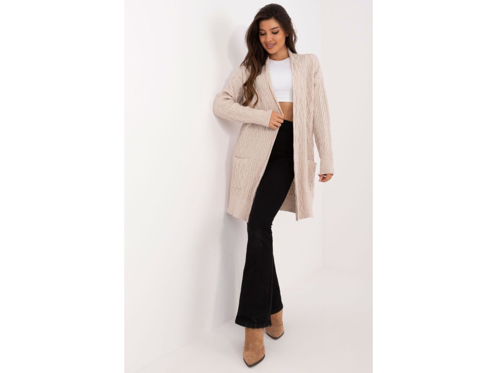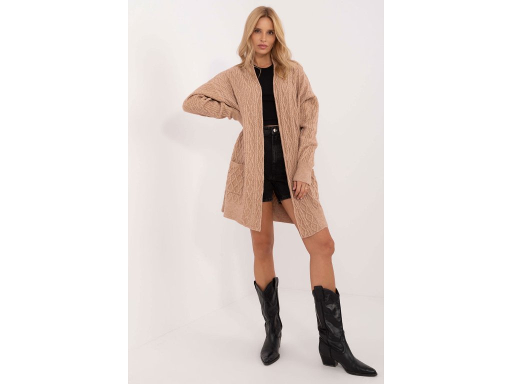 Dlouhý kardigan bez zapínání je ideální vrstva na každý den, která spojuje casual styl s pohodlím. Vyroben z akrylové, polyesterové a polyamidové směsi, poskytuje teplo a pohodlí, zároveň je lehký a příjemný na dotek. Rozmanitá struktura materiálu mu dodává výjimečný charakter, což ho dělá nejen praktickým, ale také stylovým. Kardigan má dlouhé rukávy a vkládané kapsy, které zvyšují jeho funkčnost. Jeho dlouhý tvar se skvěle hodí do chladných dnů, skvěle se hodí k casual stylizacím na každý den. Je to univerzální kus garderoby, který skvěle doplní každý outfit, přidávajíc mu elegantní volnosti.