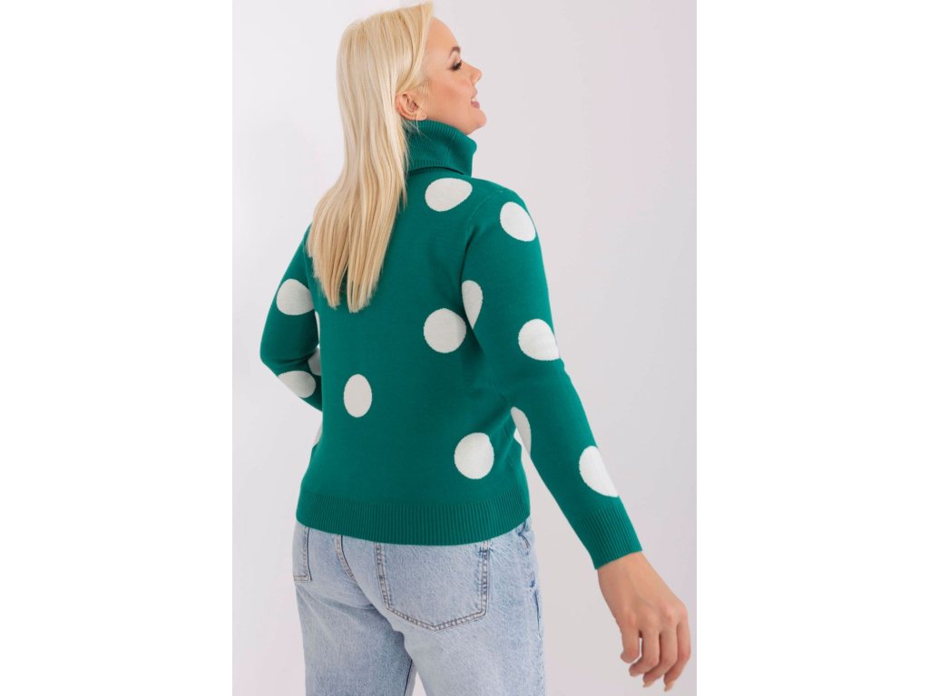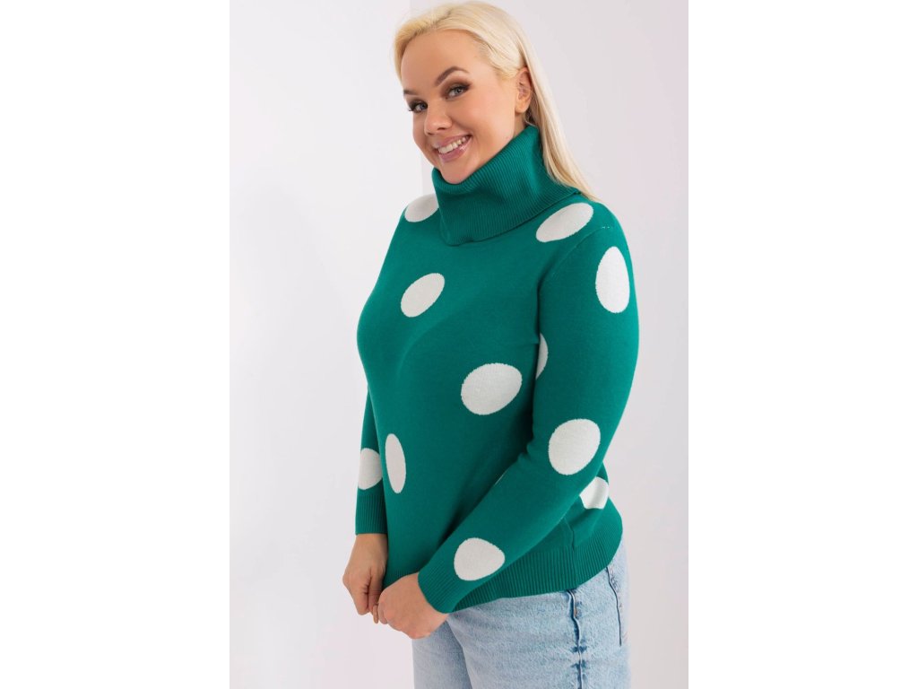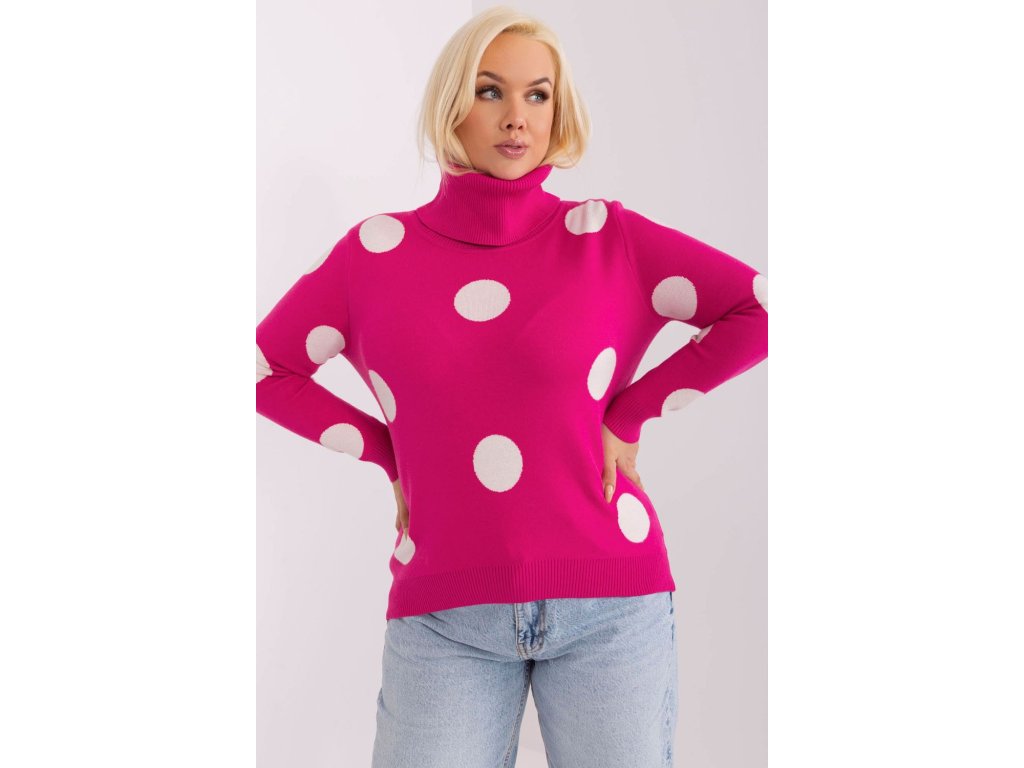 Tento dámský svetr s rolákem je ideální volbou pro mnoho příležitostí, od běžných až po pracovní. Jeho originální design se vyznačuje ozdobnými velkými hrášky, které mu dodávají jedinečný šarm. Svetr je vyroben z vysoce kvalitních materiálů, které zaručují nejen pohodlí při nošení, ale také odolnost. Díky dlouhým rukávům a standardní délce je ideální pro chladnější dny a zároveň zajišťuje volnost pohybu. Rolák dodává svetru elegantní nádech, zatímco vzor s puntíky dodává svetru lehký a zábavný nádech. Díky tomu je svetr ideální jak pro neformální každodenní stylizaci, tak pro formálnější situace. Díky originalitě tohoto svetru se stane dokonalým doplňkem šatníku každé ženy, která ocení pohodlí a módní, ležérní styl.