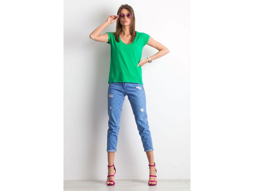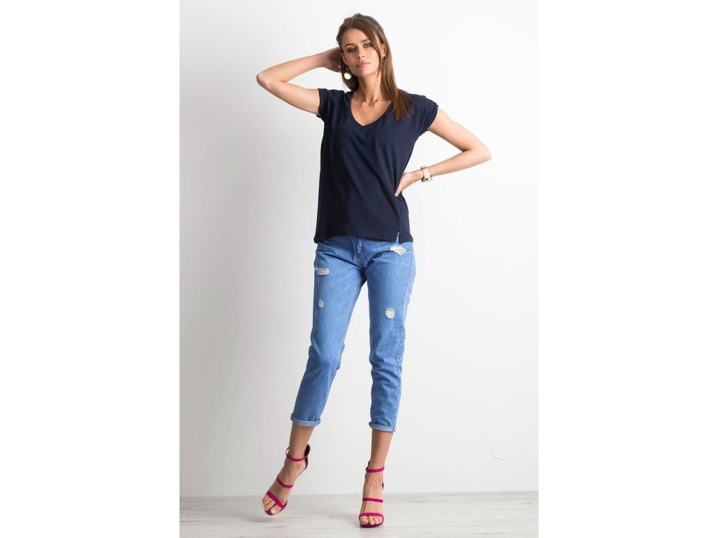 Hladké dámské tričko s výstřihem do V je nejmódnějším tričkem sezóny. Kromě klasického trička s kulatým výstřihem se vyplatí mít v šatníku také modely s výstřihem do V, protože vypadají stejně stylově a navíc zvýrazňují poprsí. Toto základní tričko má tradiční krátké rukávy a pohodlný střih, který neomezuje v pohybu a pěkně sedí na postavě. Celkový styl odkazuje na minimalistický styl, ale nepostrádá dívčí půvab. Tričko je vyrobeno z kvalitních materiálů, které jsou prodyšné a zároveň příjemné na dotek a měkké.