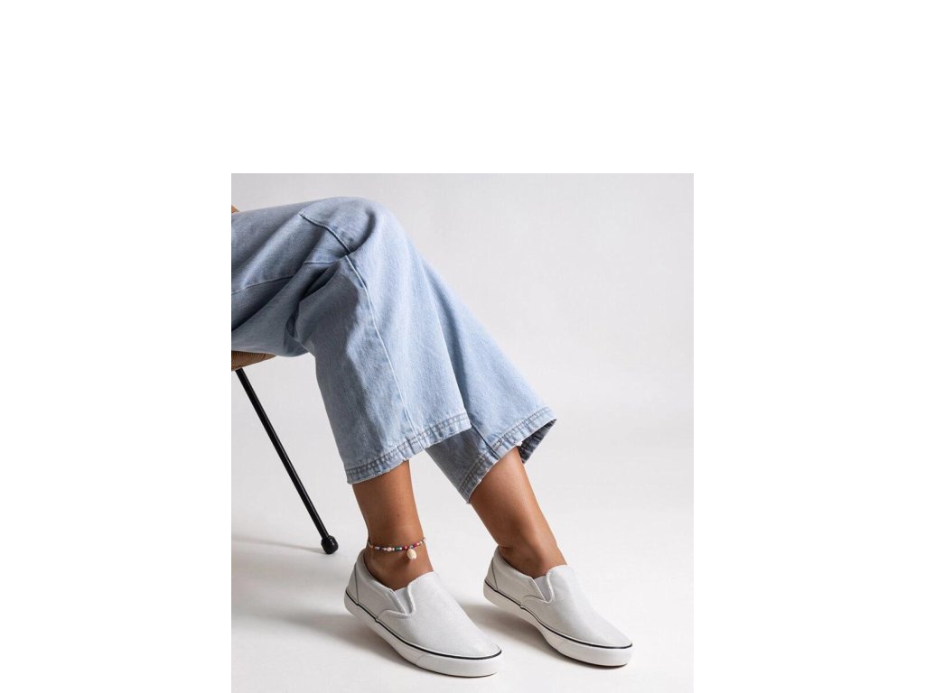 Bílé lesklé tenisky Lubluhah jsou revoluční obuví, která kombinuje moderní design s čistým komfortem nošení. Jejich nízký profil a zaoblená špička jim dodávají elegantní vzhled, který skvěle ladí s mnoha různými styly. Vyrobené z vysoce kvalitní gumy nejenže jsou odolné, ale také poskytují pohodlí při chůzi. Navíc díky svému slip-on modelu jsou snadno nasazovatelné a ideální pro rychlá vycházení. Tyto tenisky jsou nezbytnou součástí šatníku pro každého módního nadšence, který si cení pohodlí a stylu! Vnější materiál: Textilní materiál Podšívka: Žádná Podrážka: Guma Barva podrážky: Beige Zapínání: Nazouvání Kolekce: Jaro/Léto