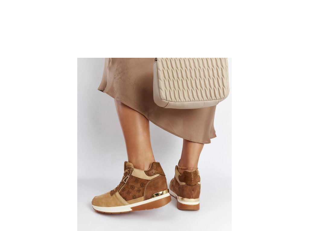 Hnědé tenisky na klínu Knoxville jsou ideální obuví na léto. Vyrobené z vysoce kvalitní ekologické kůže zámku, zajistí pohodlí a odolnost. Nemají žádnou podšívku, takže jsou ideální na nošení v teplejších dnech. Podrážka z hnědého umělého materiálu skvěle ladí s celým botou. Zapínání na tkaničky umožňuje perfektní přizpůsobení boty noze. Tenisky Knoxville jsou skvělou volbou pro všechny milovníky sportovního stylu a pohodlí. Ideální na letní procházky nebo setkání s přáteli.
