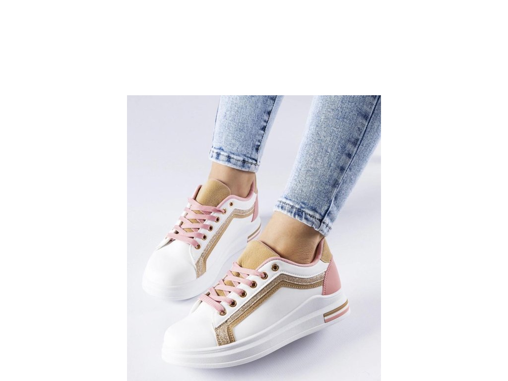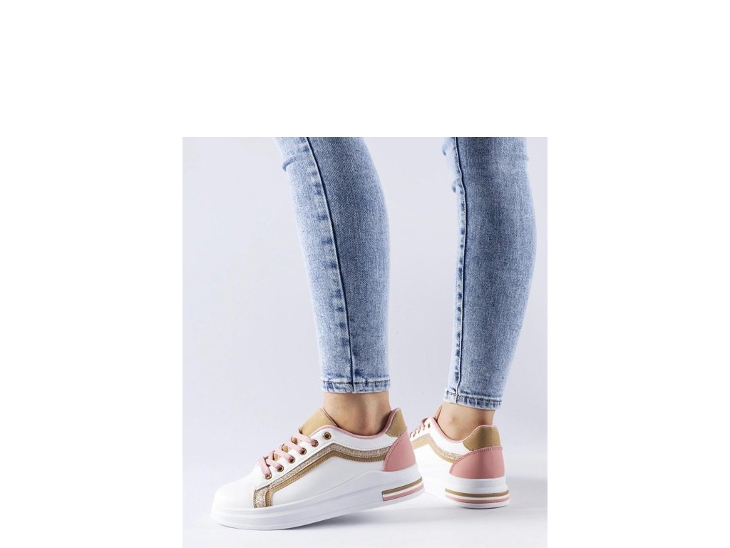Stylové bílo-růžové tenisky na platformě Mayfield vyrobené z vysoce kvalitní ekologické kůže. Tenisky jsou zdobené zlatými prvky, které jim dodávají eleganci a styl. Mají šněrovací uzavírání, které zajišťuje ideální přizpůsobení noze. Ideální na léto díky bílé podrážce a lehké konstrukci. Přidají charakter každému outfitu, jak casualovému, tak elegantnějšímu. Must-have pro každou módní ženu!